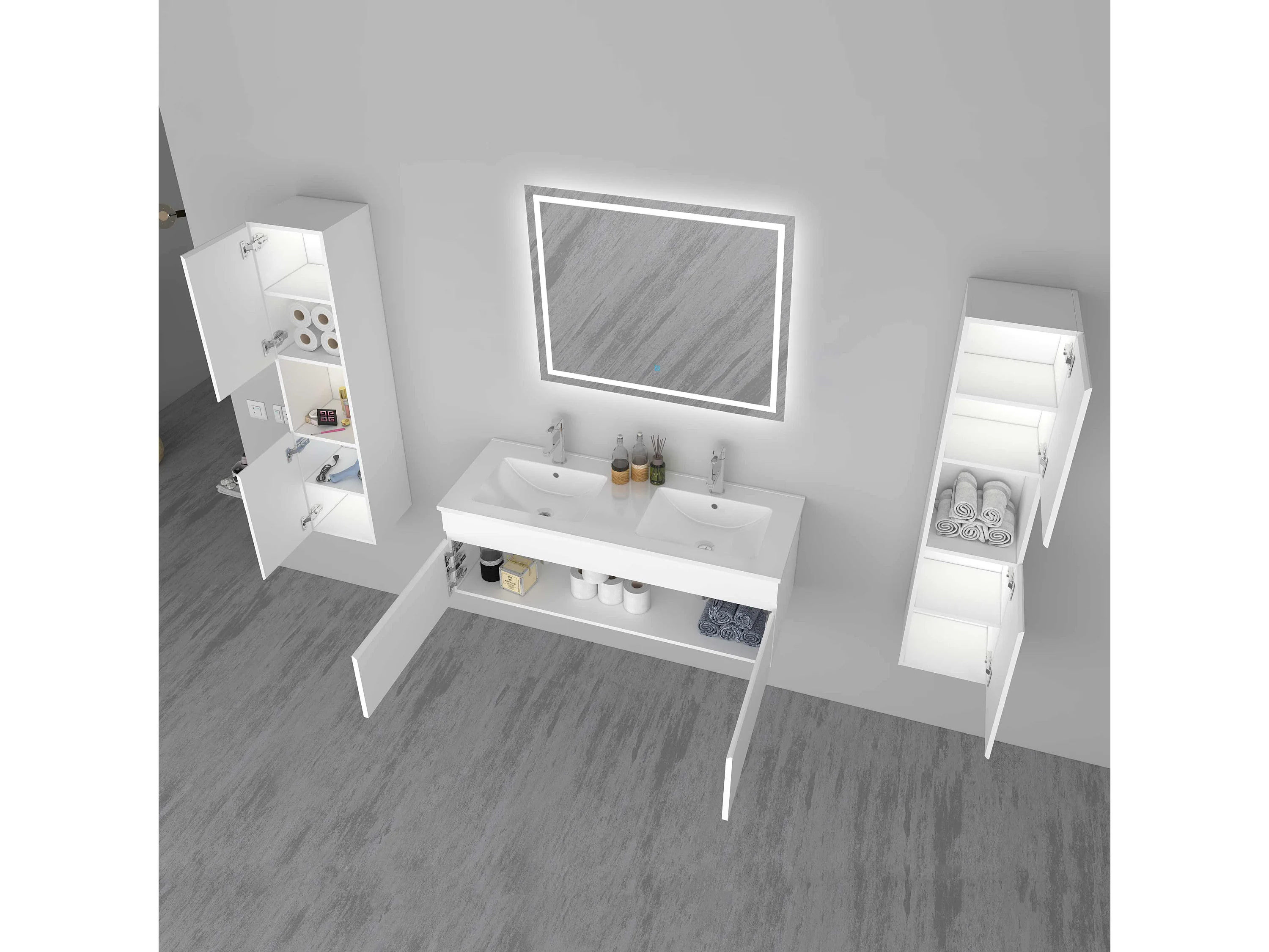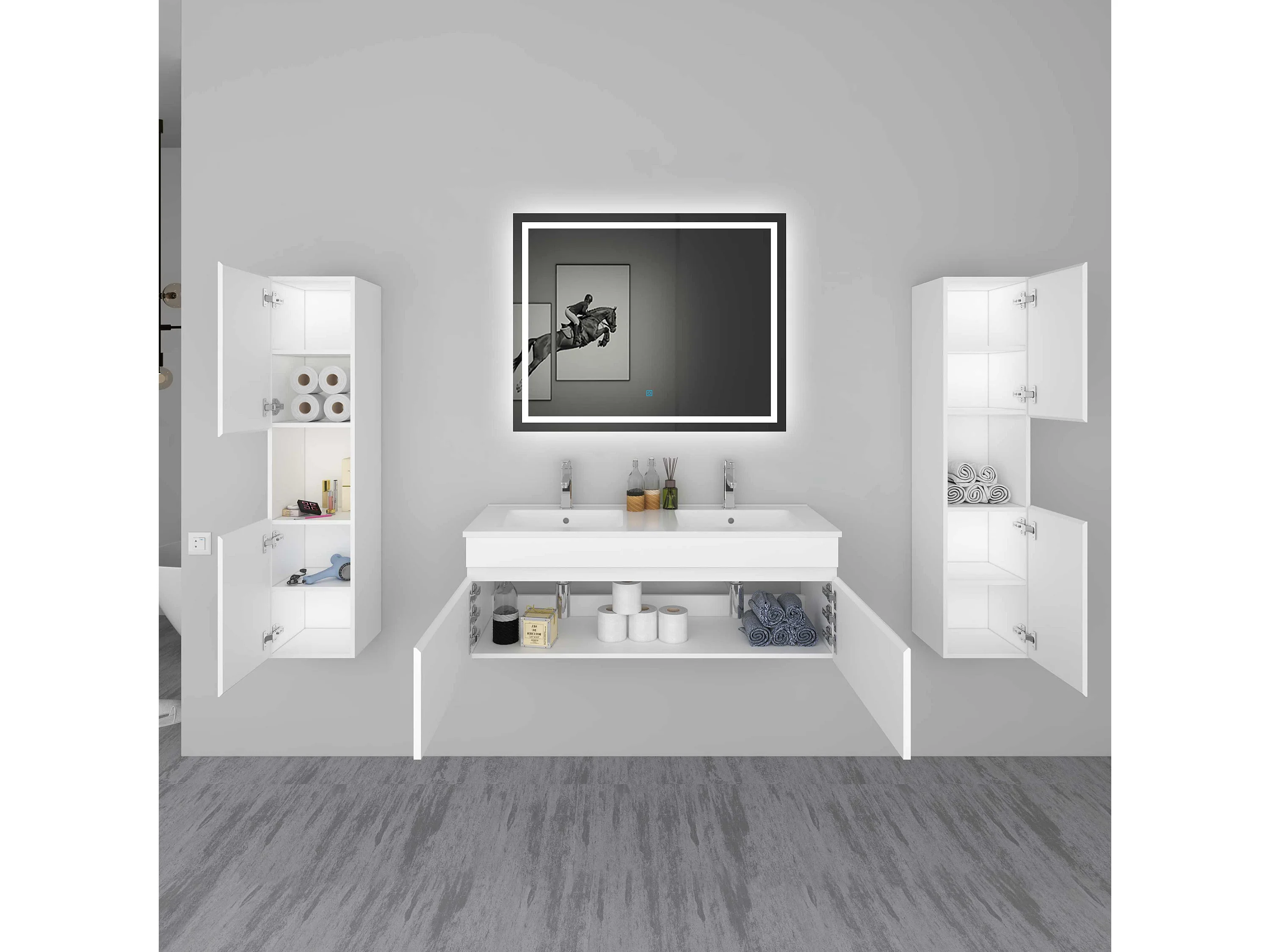 AICA Ensemble meuble Salle de Bain vasque L.120cm Blanc 2 Portes + 2 Colonne + Miroir LED 100 x 80 cm