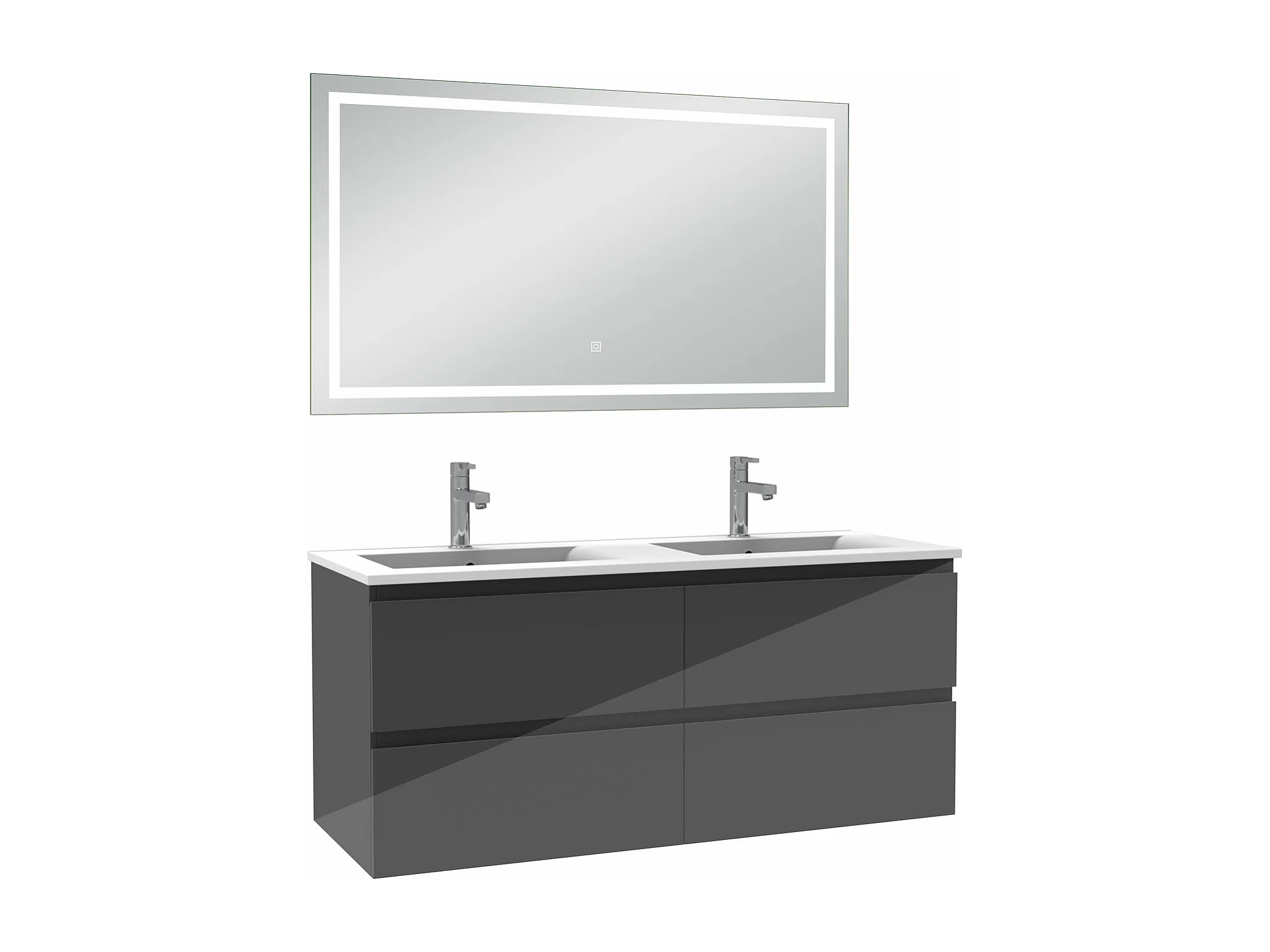 AICA Ensemble meubles salle de bains Anthracite 120cm,lavabo+Miroir Lumineux antibuée,3 couleurs dimmable+mémoire