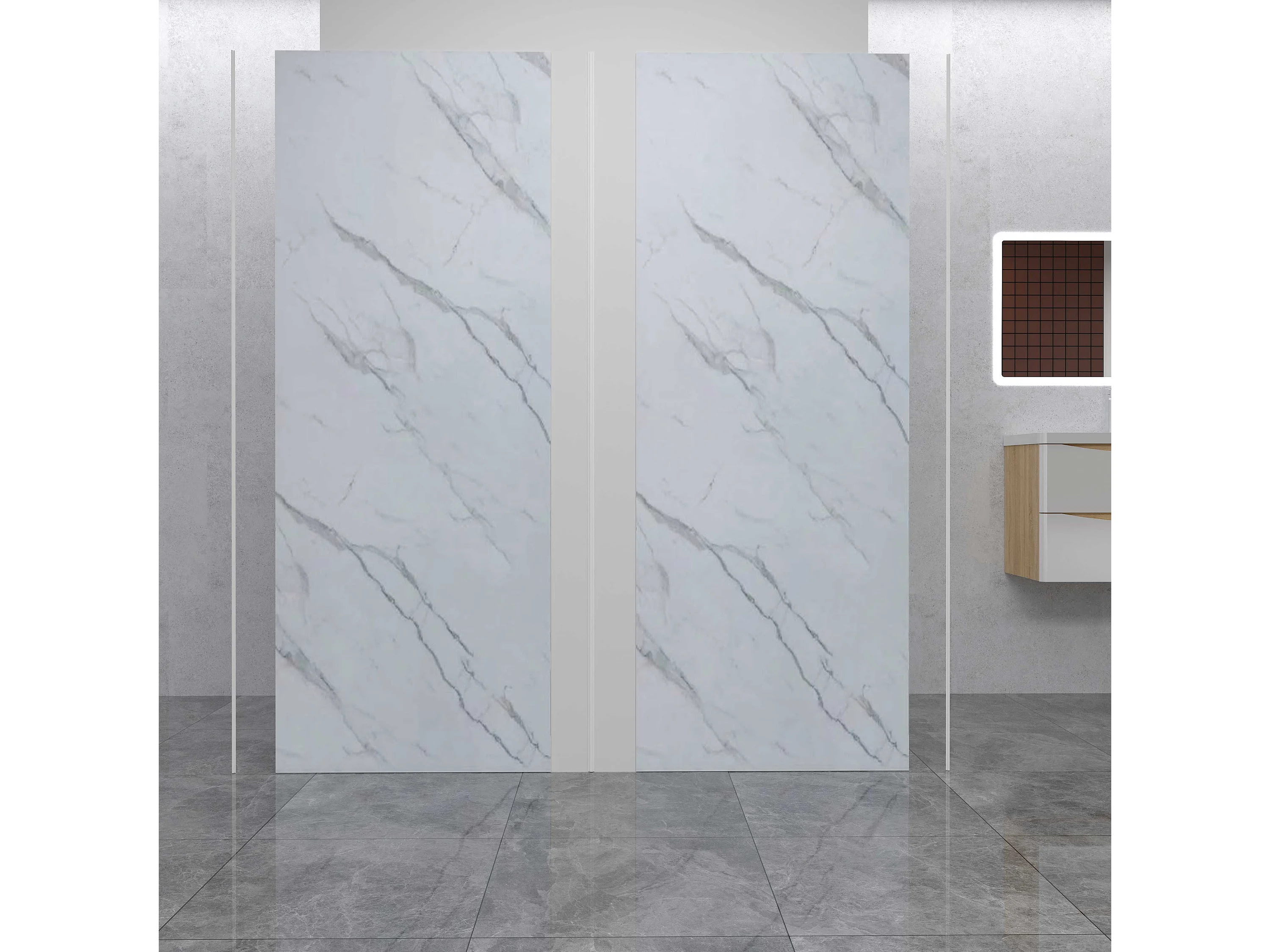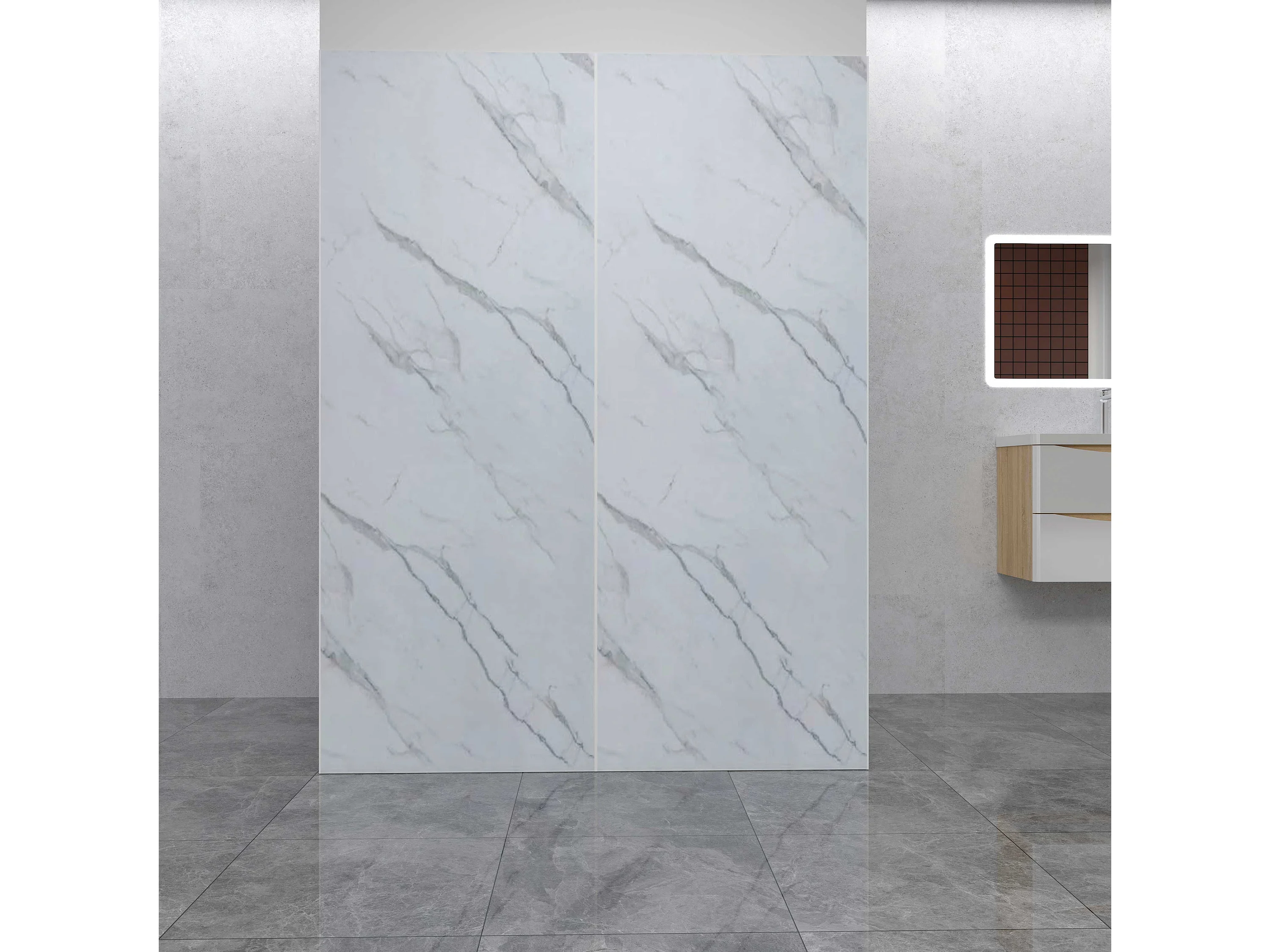 AICA Lot de 2 panneaux muraux de douche effet Marbre en Aluminium avec 3 profilés — L80xL90xH210 cm , Protection murale,Antimoisissure,Facile pose