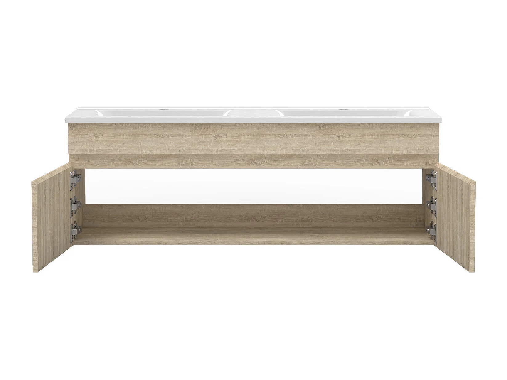 AICA Meuble Salle de Bain 120cm Chêne + vasque + miroir lumineux + colonne