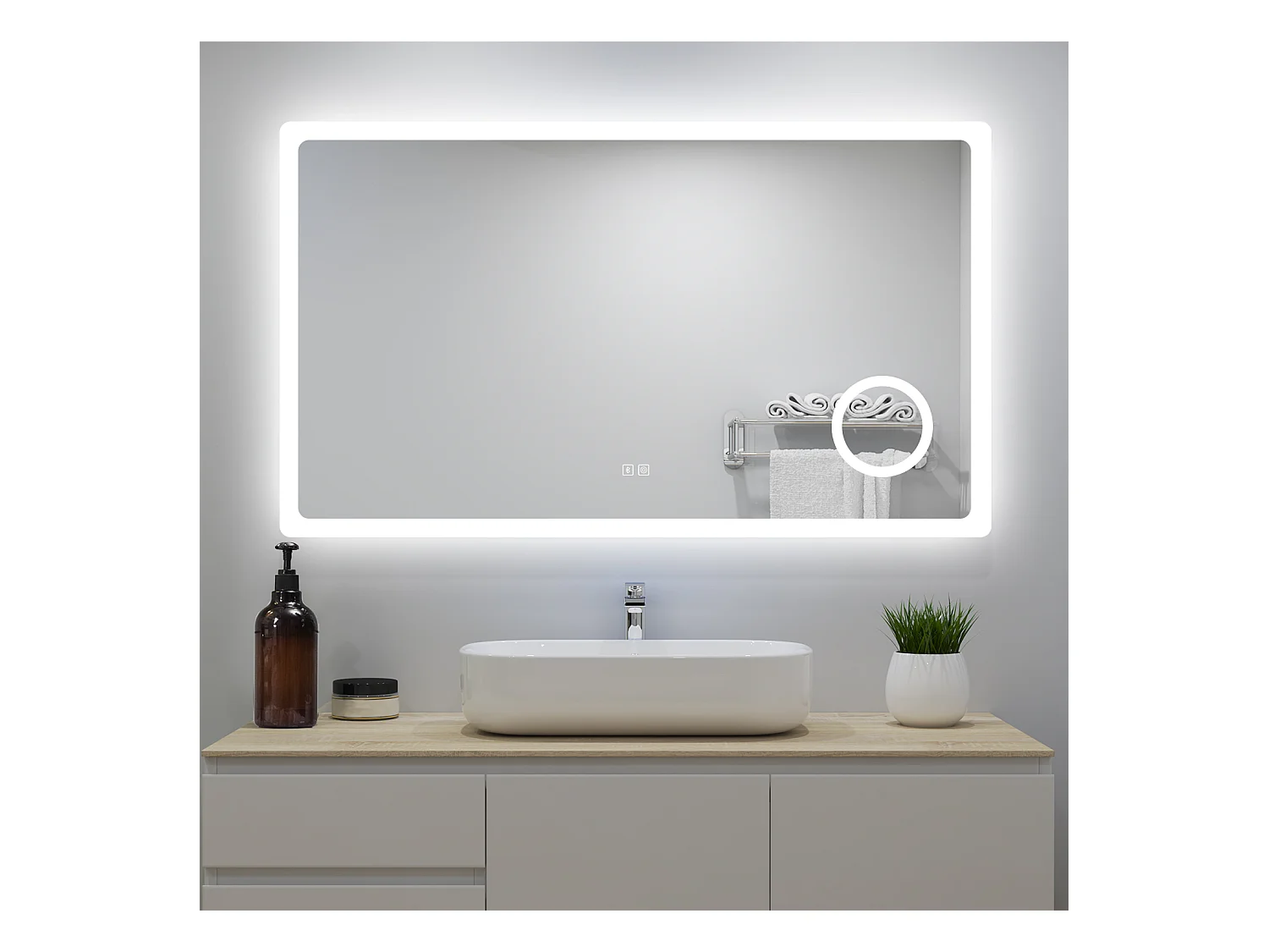 Aica Miroir de Salle de Bain LED avec Bluetooth 120 x 70cm, Miroir Lumineux avec 3 Couleurs + Anti-buée + grossissant 3x,Mural Miroir