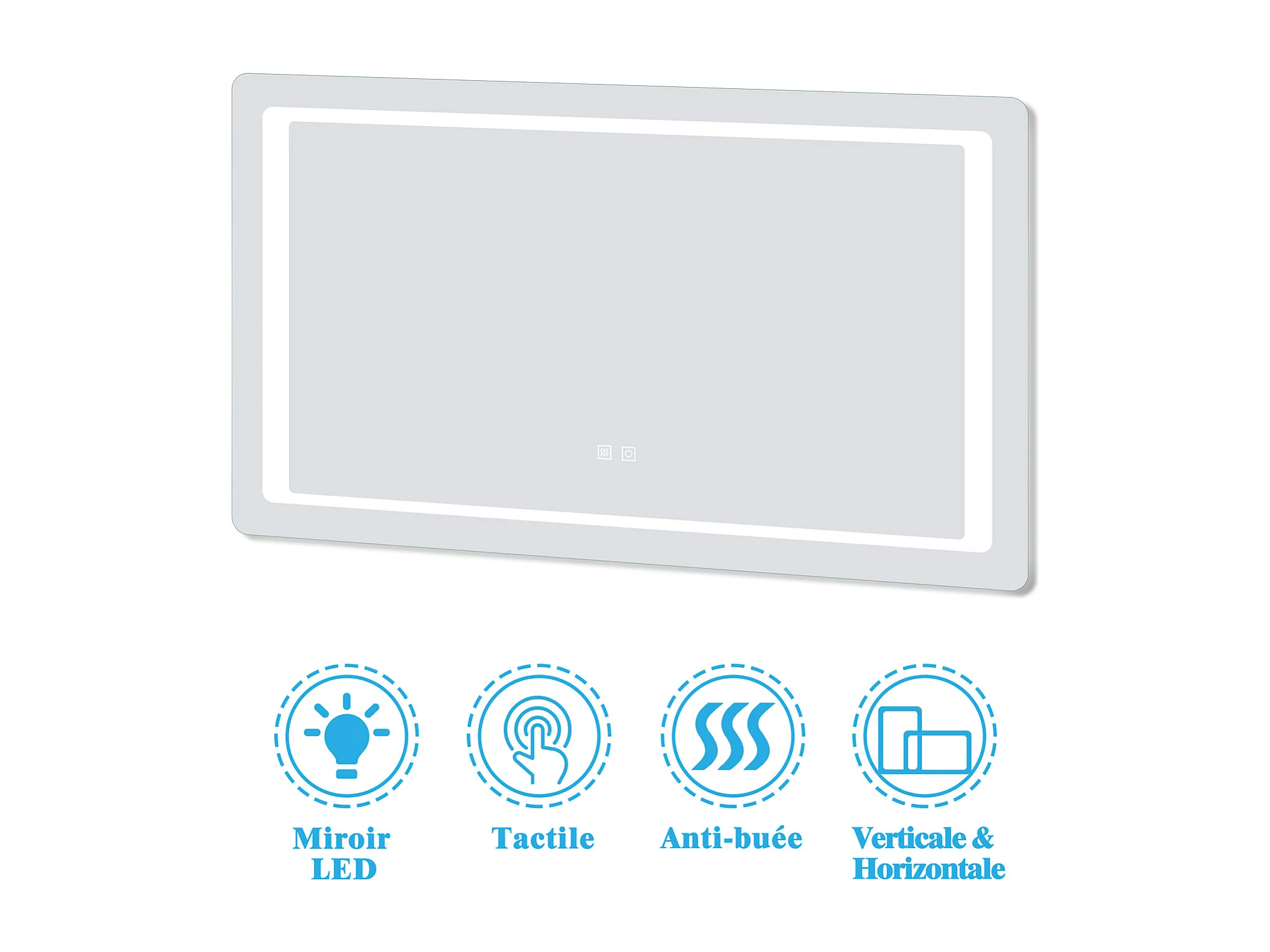 AICA Miroir lumineux à LED 100x60cm, Dimmable et Mémoire, Anti-Buée, Miroir de salle de bain