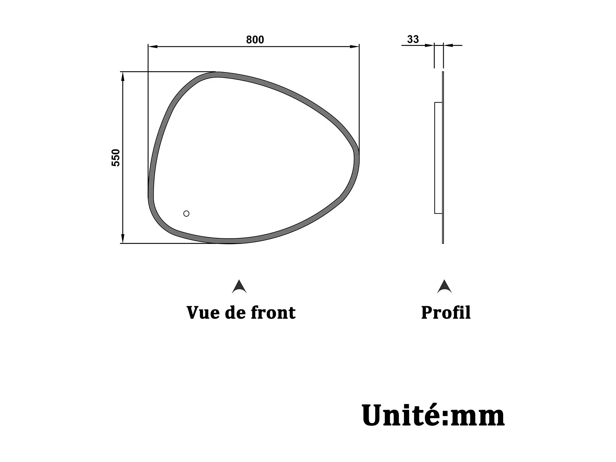 Miroir asymétrique métal