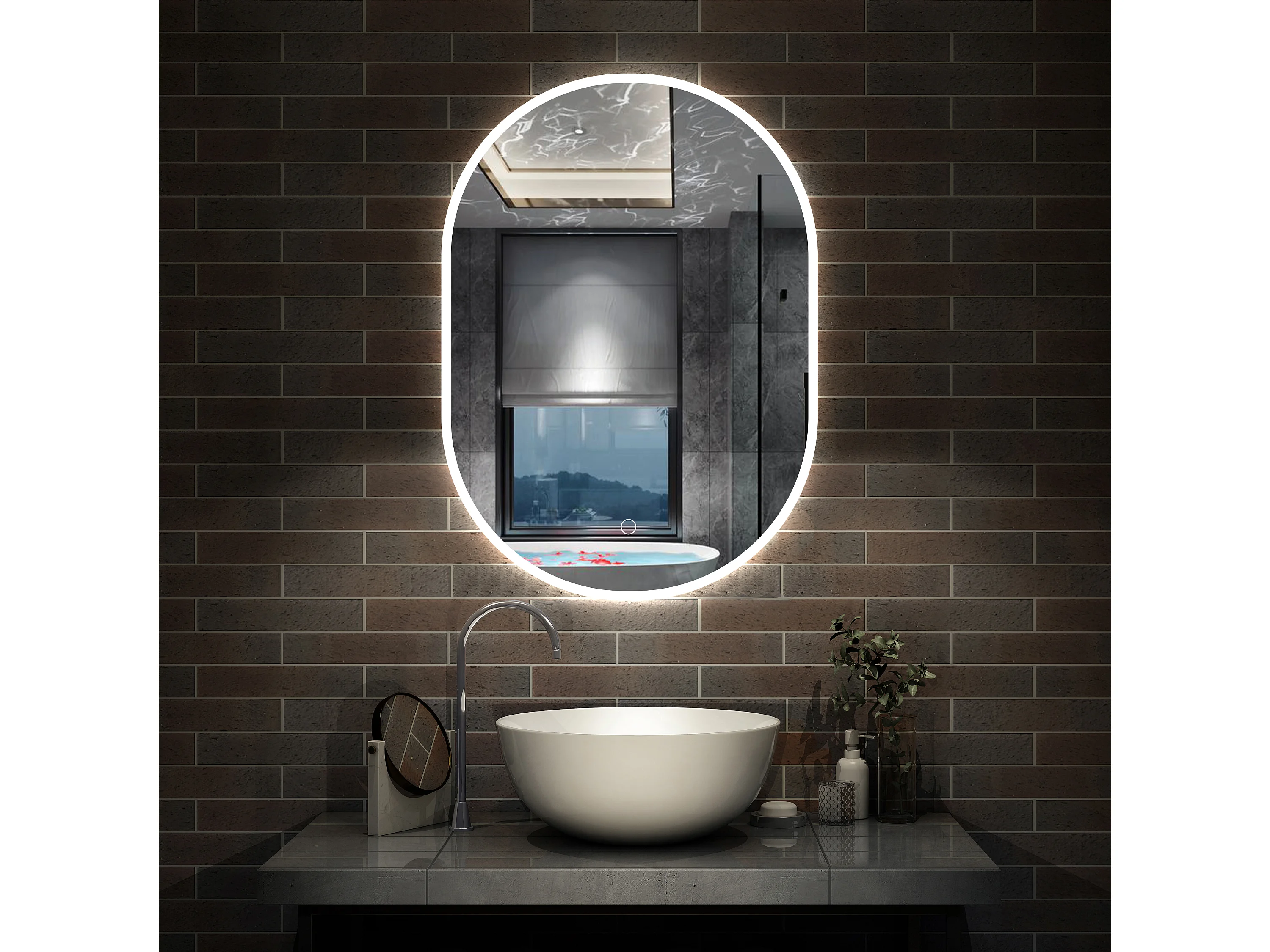 LuxuryBain- Miroir de salle de bain LED 50x70cm ovale anti buée LB-316080