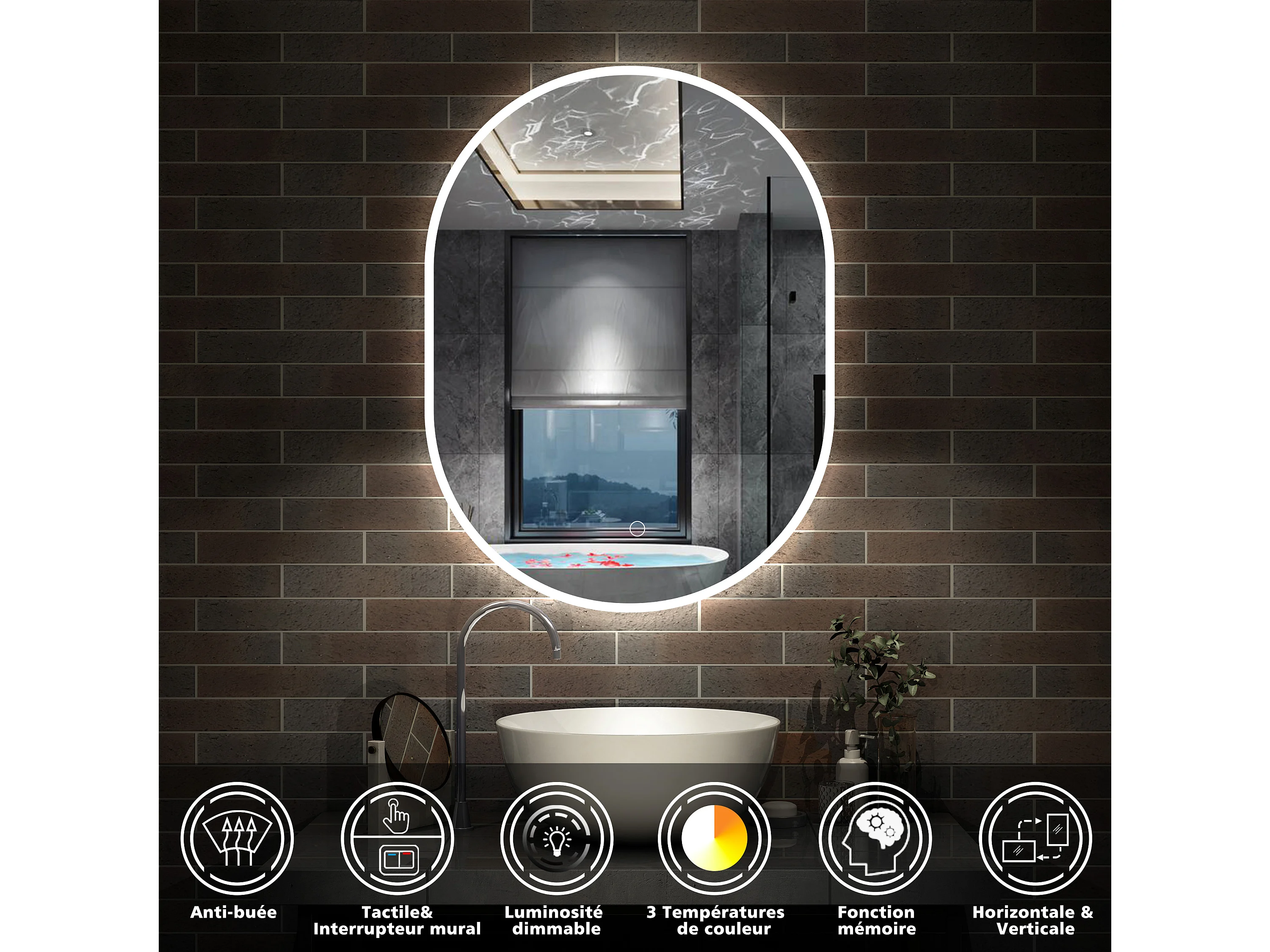 LuxuryBain- Miroir de salle de bain LED à luminosité variable 60x80cm oval