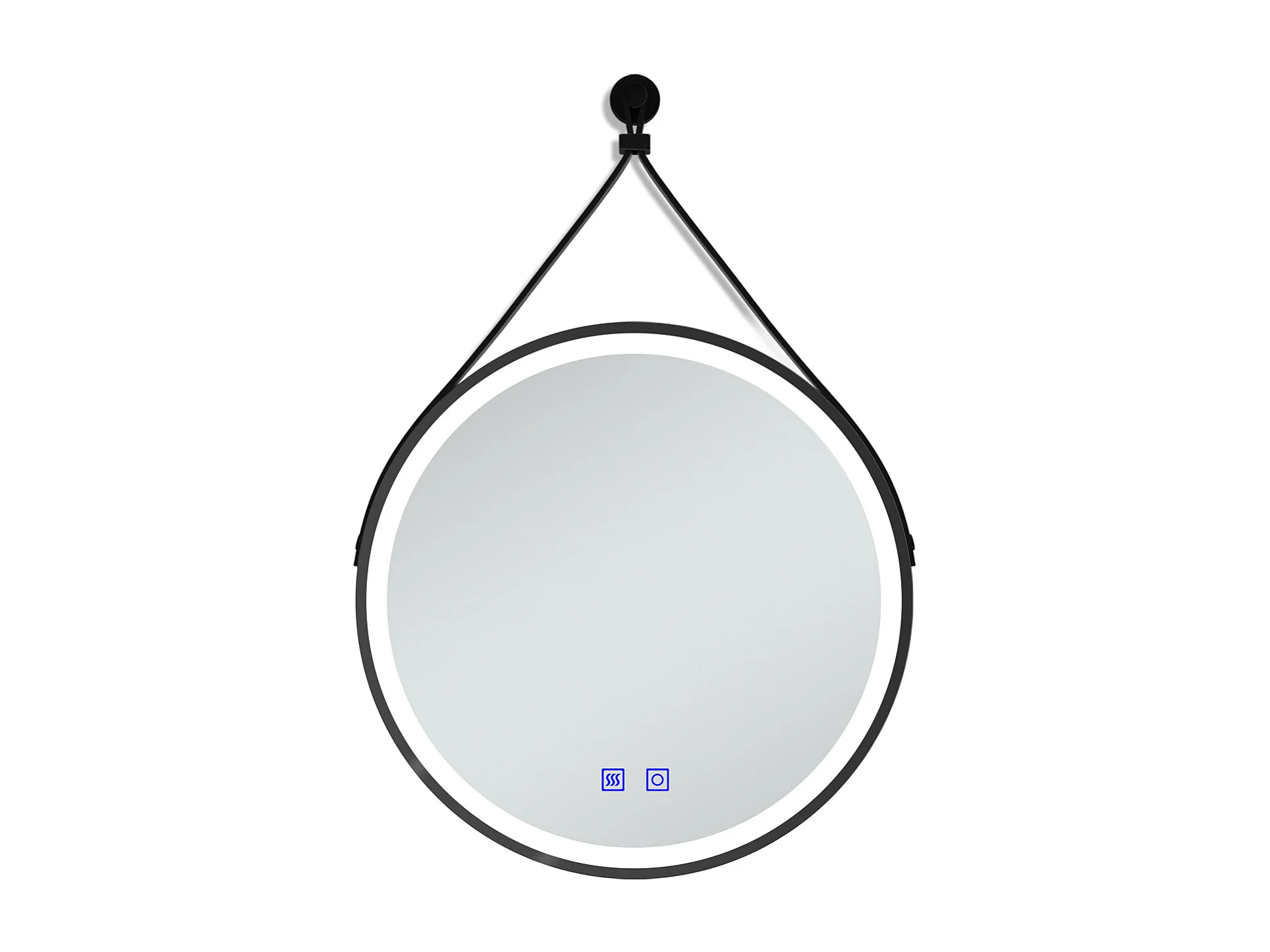 AICA Miroir salle de bain rond LED 70cm tricolore + anti-buée + dimmable + mémoire,avec ceinture en cuir amovible,noir