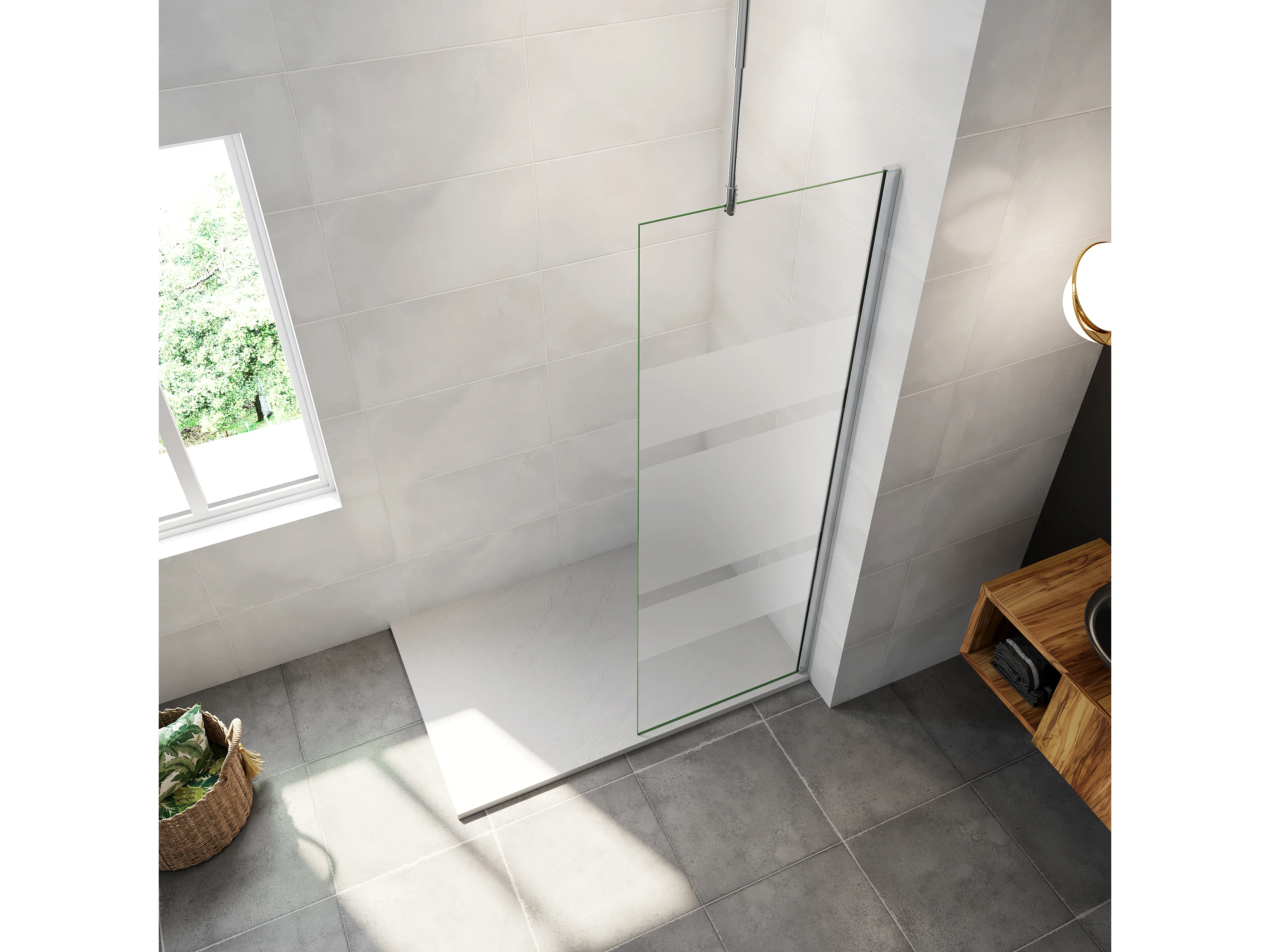 AICA paroi de douche à l'italienne chrome 70x190cm,6mm verre anticalcaire - bandes horizontales sérigraphiées,barre de fixation au plafond 90-150cm