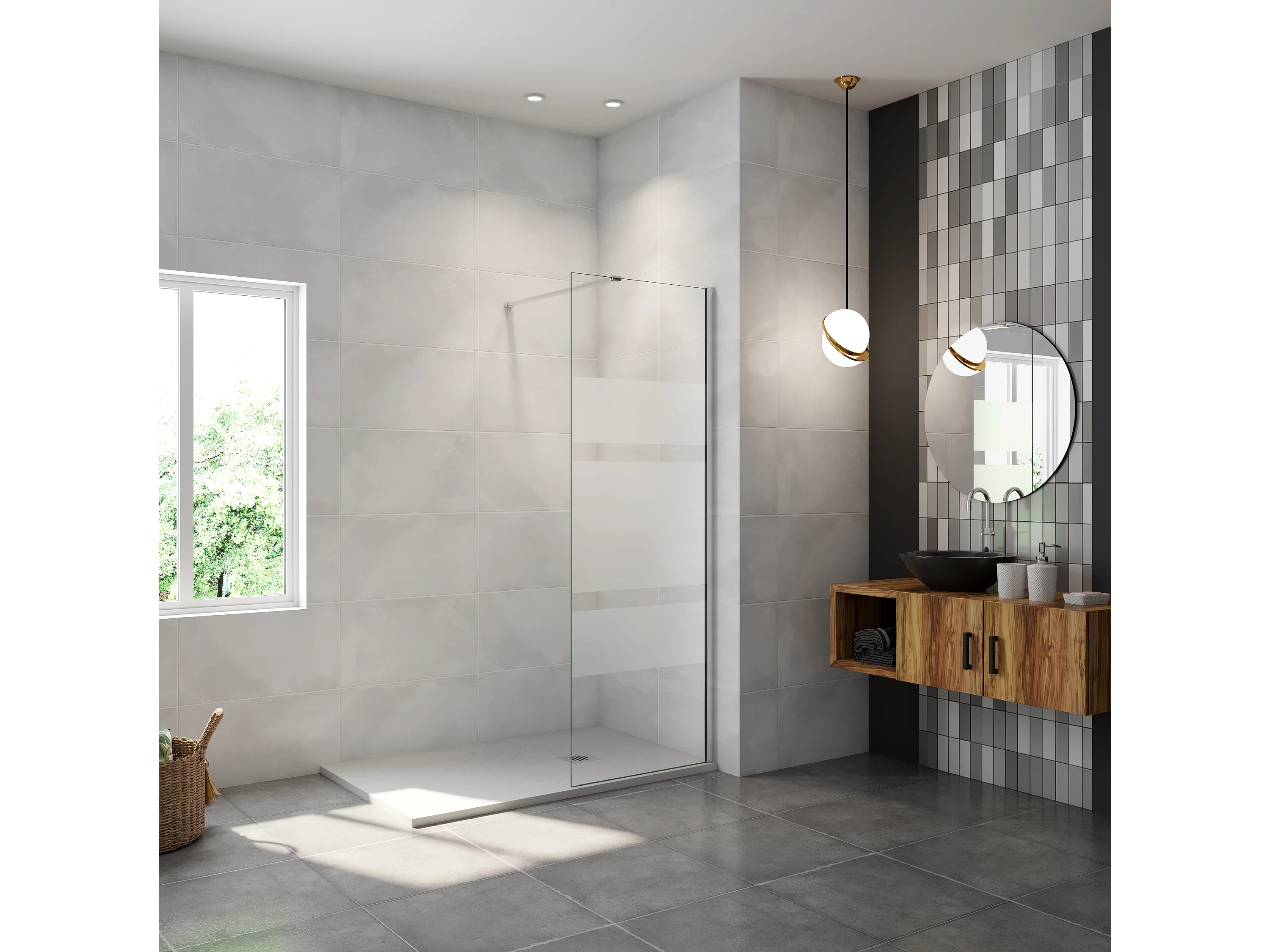 AICA paroi de douche à l'italienne chrome 80x190cm,6mm verre anticalcaire avec bandes horizontales sérigraphiées,avec barre de fixation 140cm