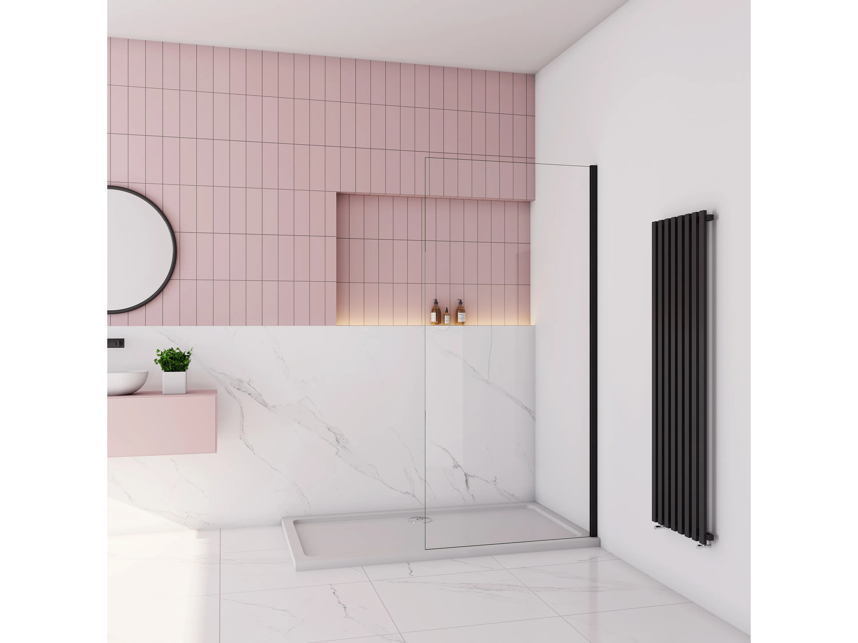 AICA paroi de douche à l'italienne fixe 140x200cm,style atelier,Profilé en aluminium noir mat,en 8mm verre anticalcaire,sans receveur