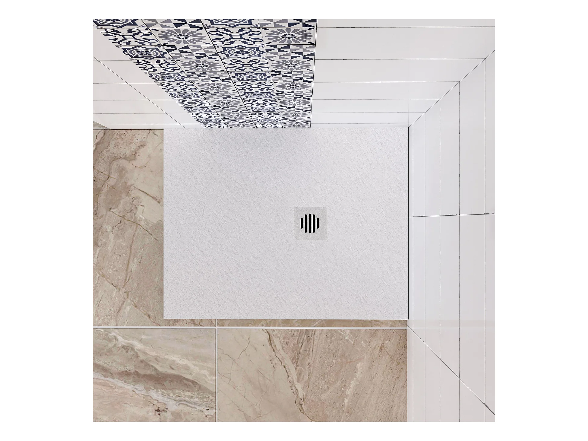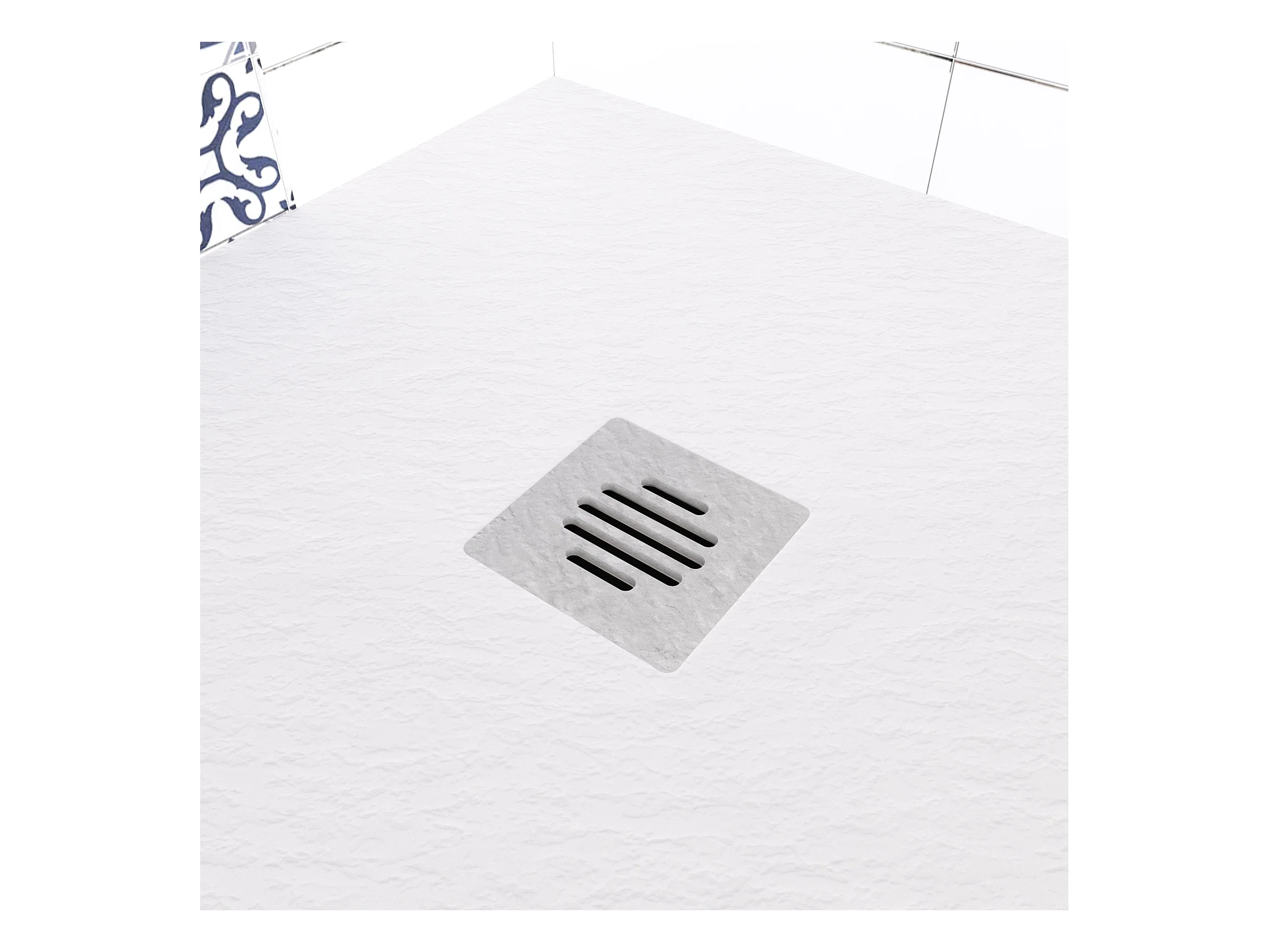 Aica receveur de douche Rectangulaire 100x90x3cm,Extra plat Blanc antidérapant ,Receveur extra-plat à poser ou à encastrer,avec une grille en ABS