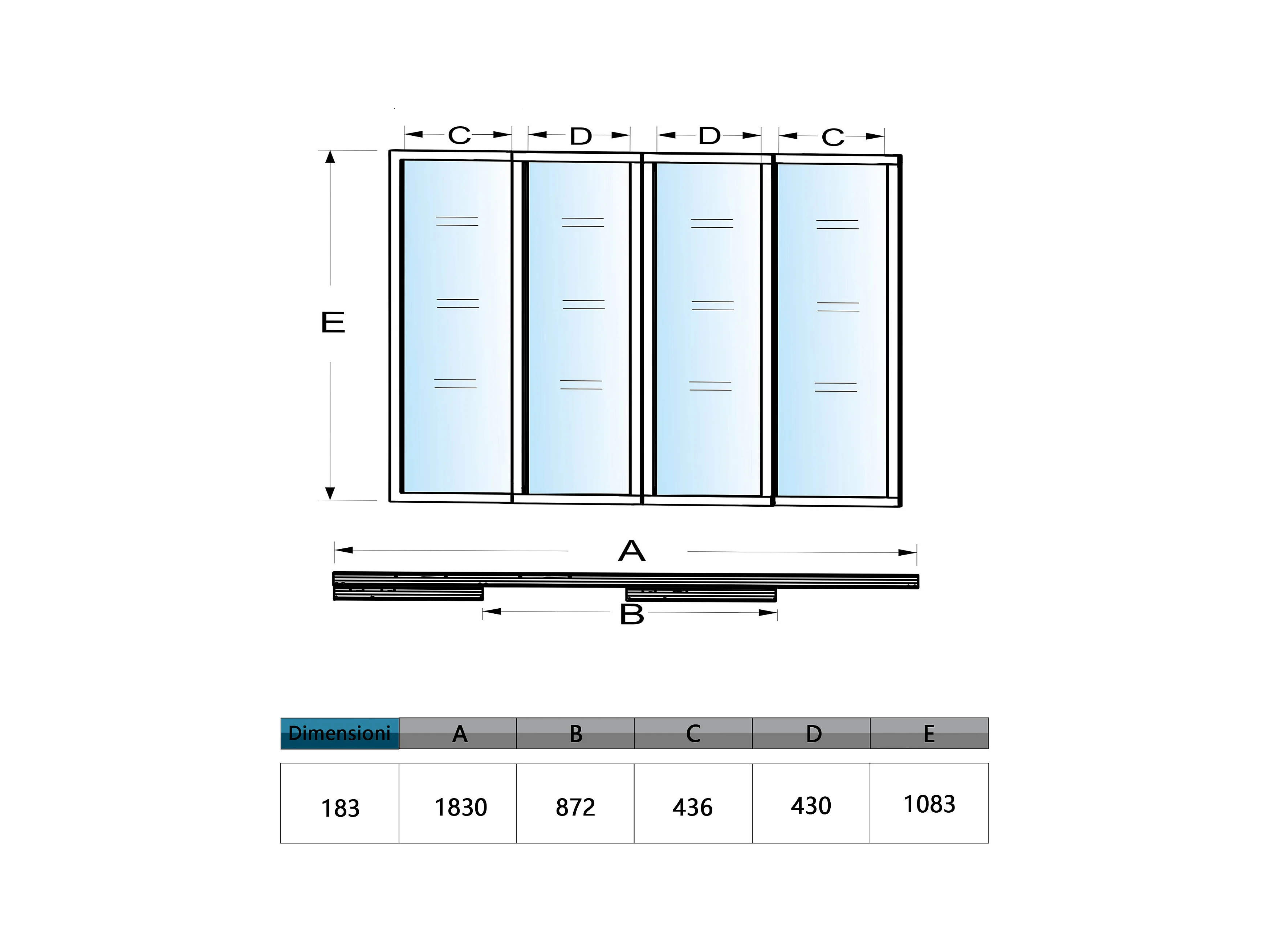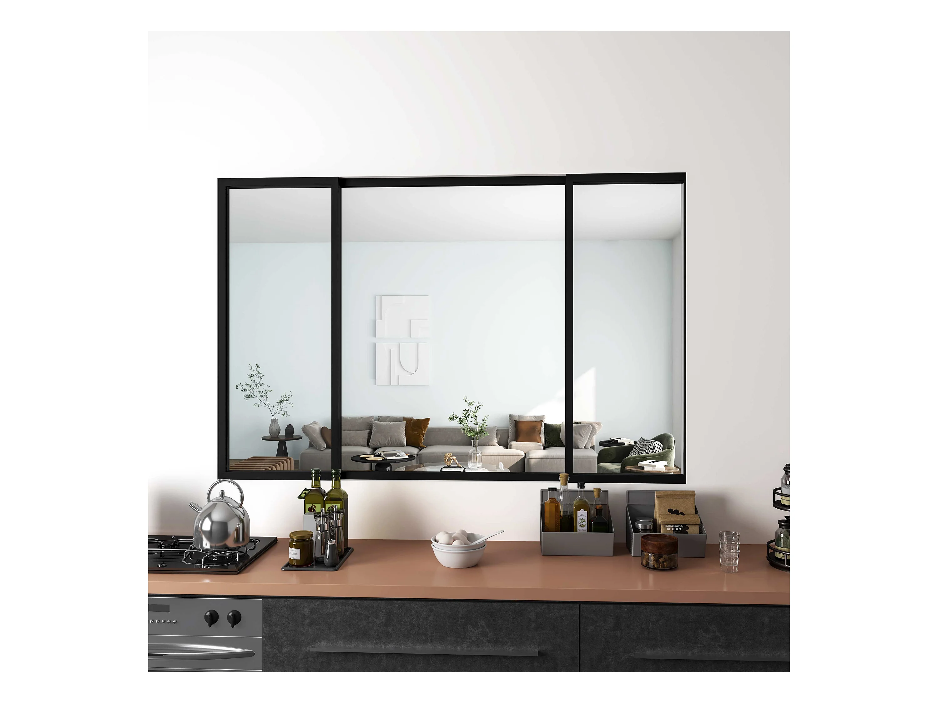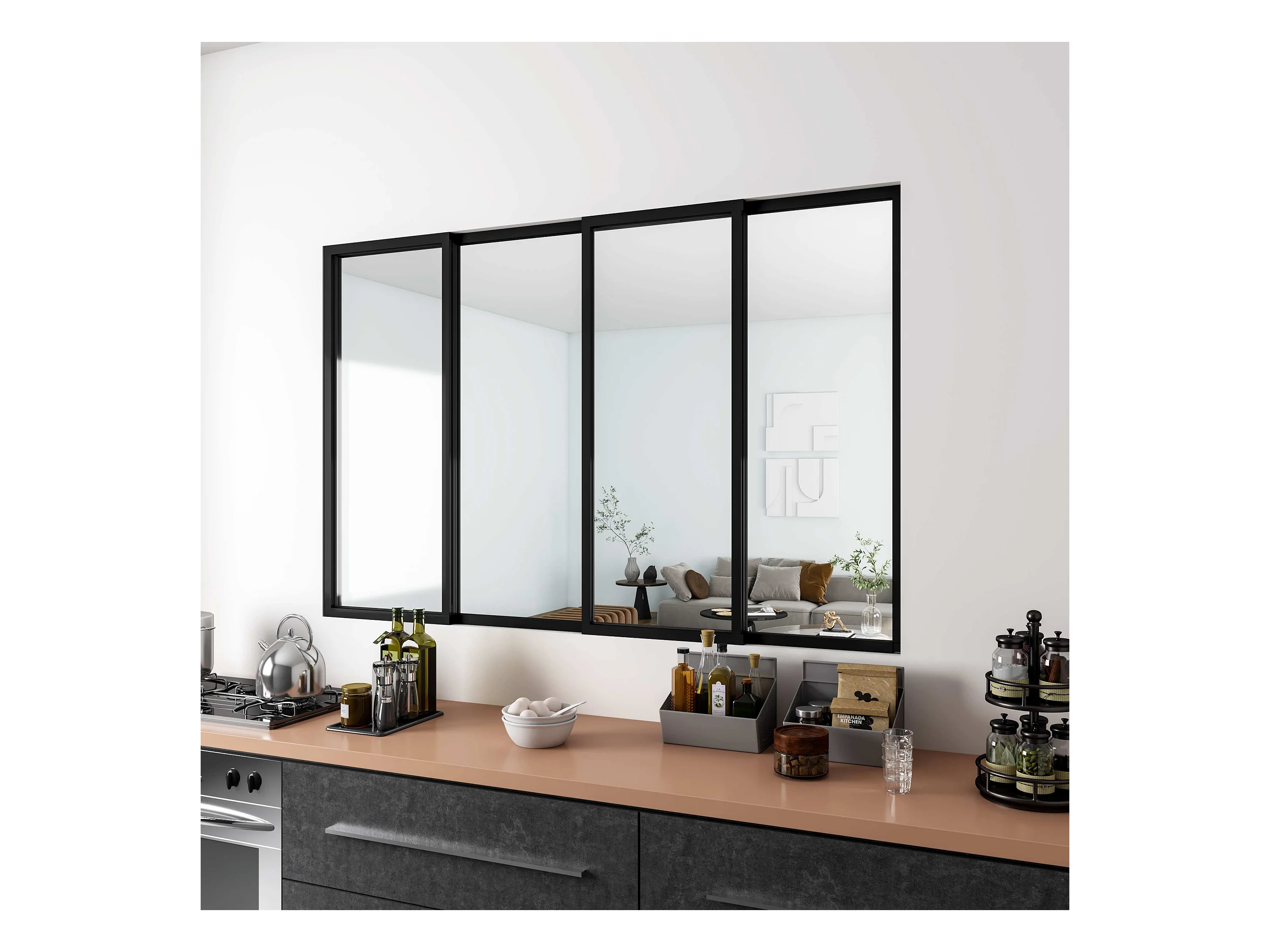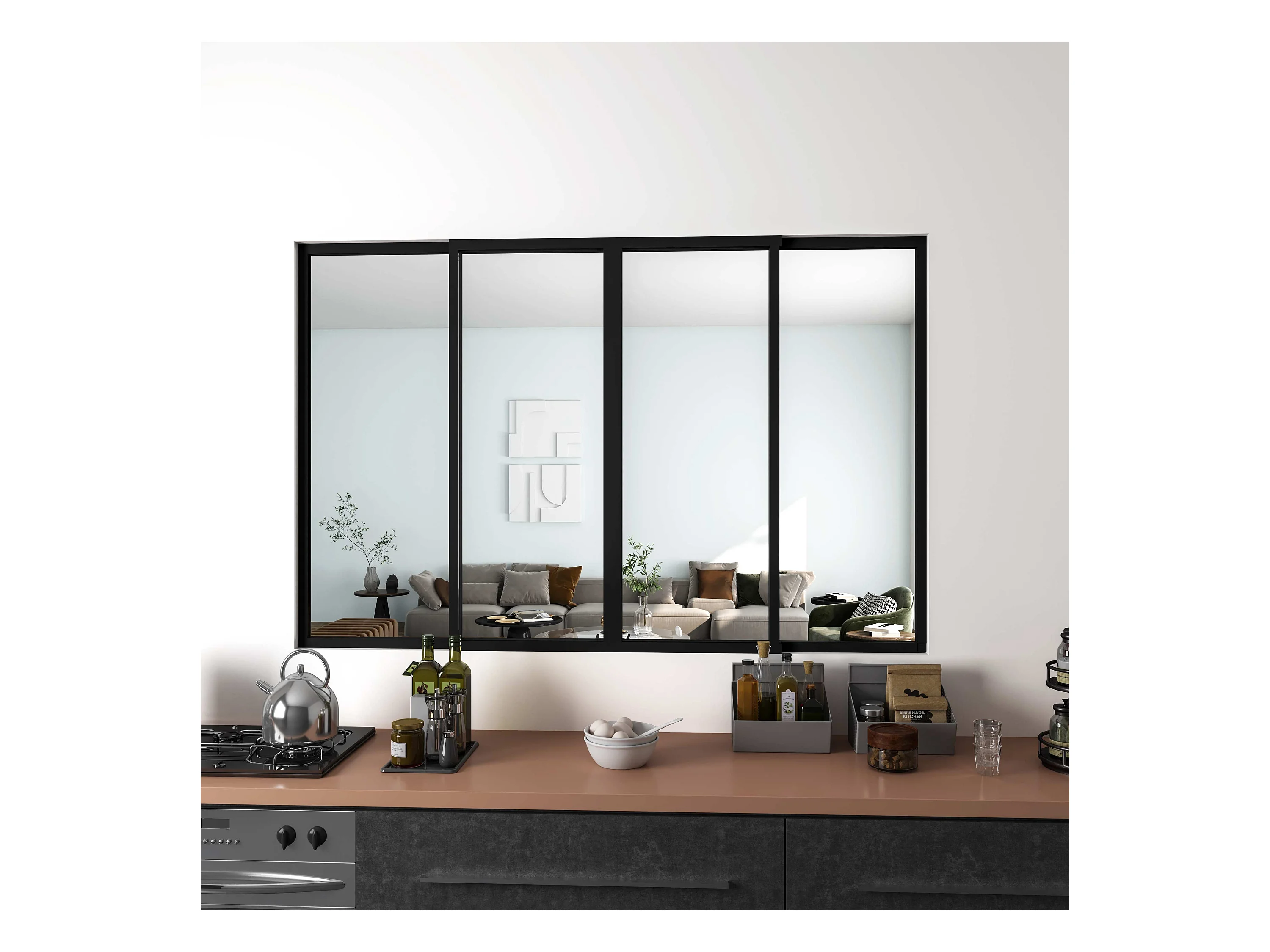 AICA Verrière Atelier Coulissante en Aluminium Noir – L183xH108cm, 4 Panneaux en 4mm Verre Trempé, Séparation Élégante Cuisine / Salon