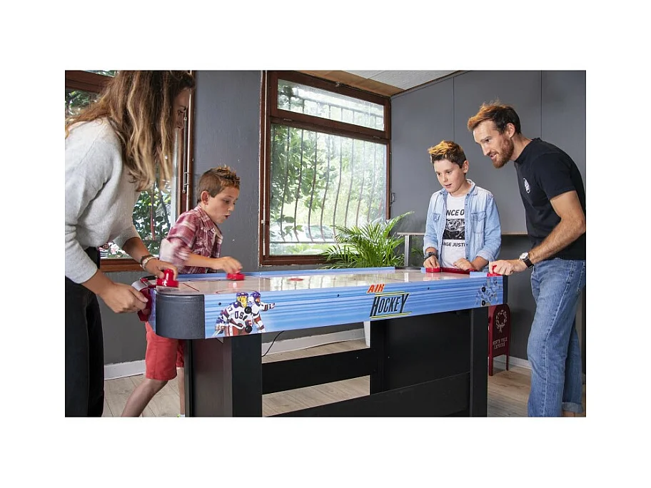 Air Hockey Teenager - Table de Air-Hockey avec système d'air pulsé 6-8W - 142 x 72 x 81 cm - Bleu/Noir