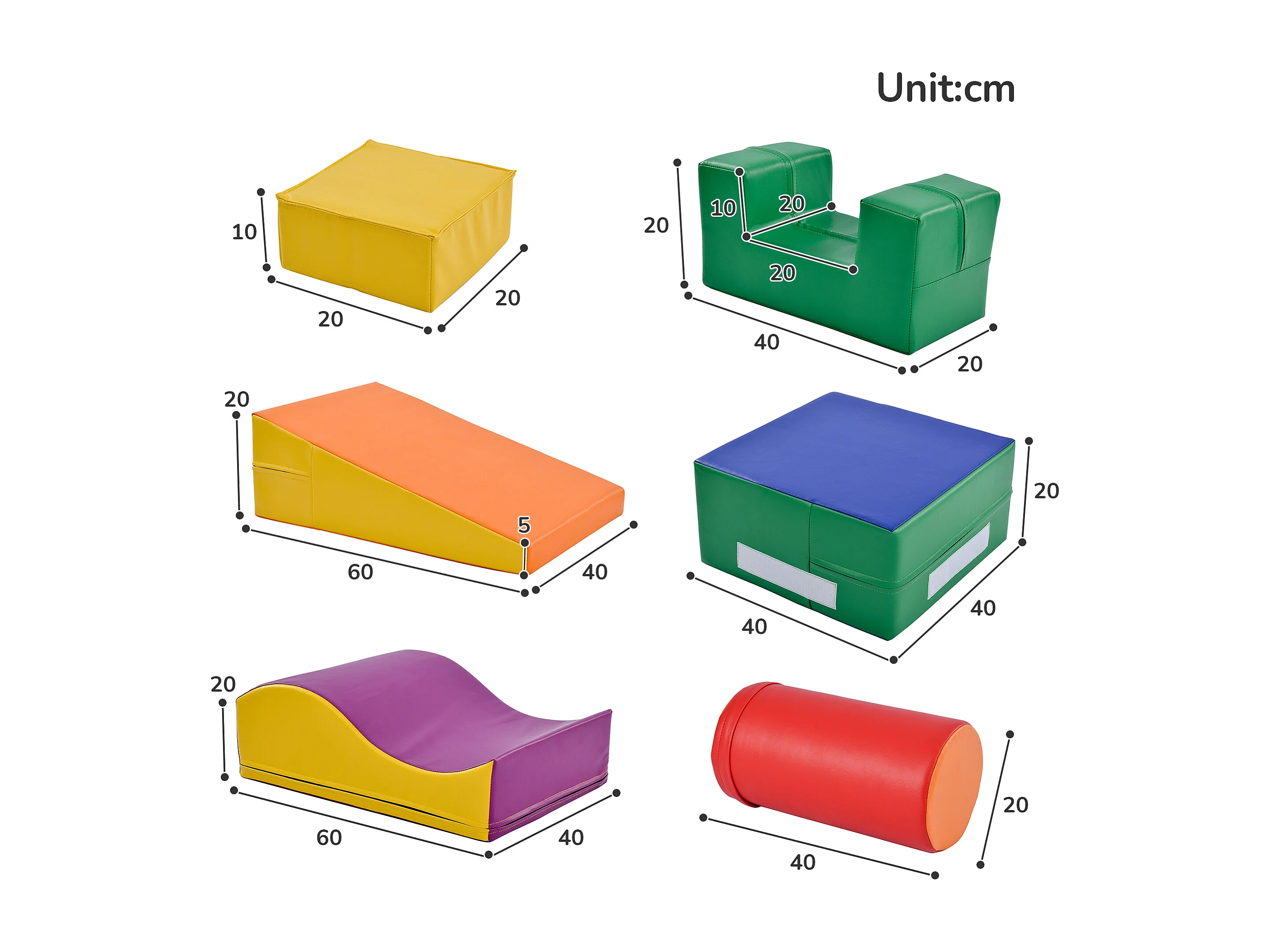 6 blocs de construction en mousse XL - modules de motricité - jouets éducatifs - certifiés normes EN71-1-2-3 - mousse EPE revêtement PU multicolore