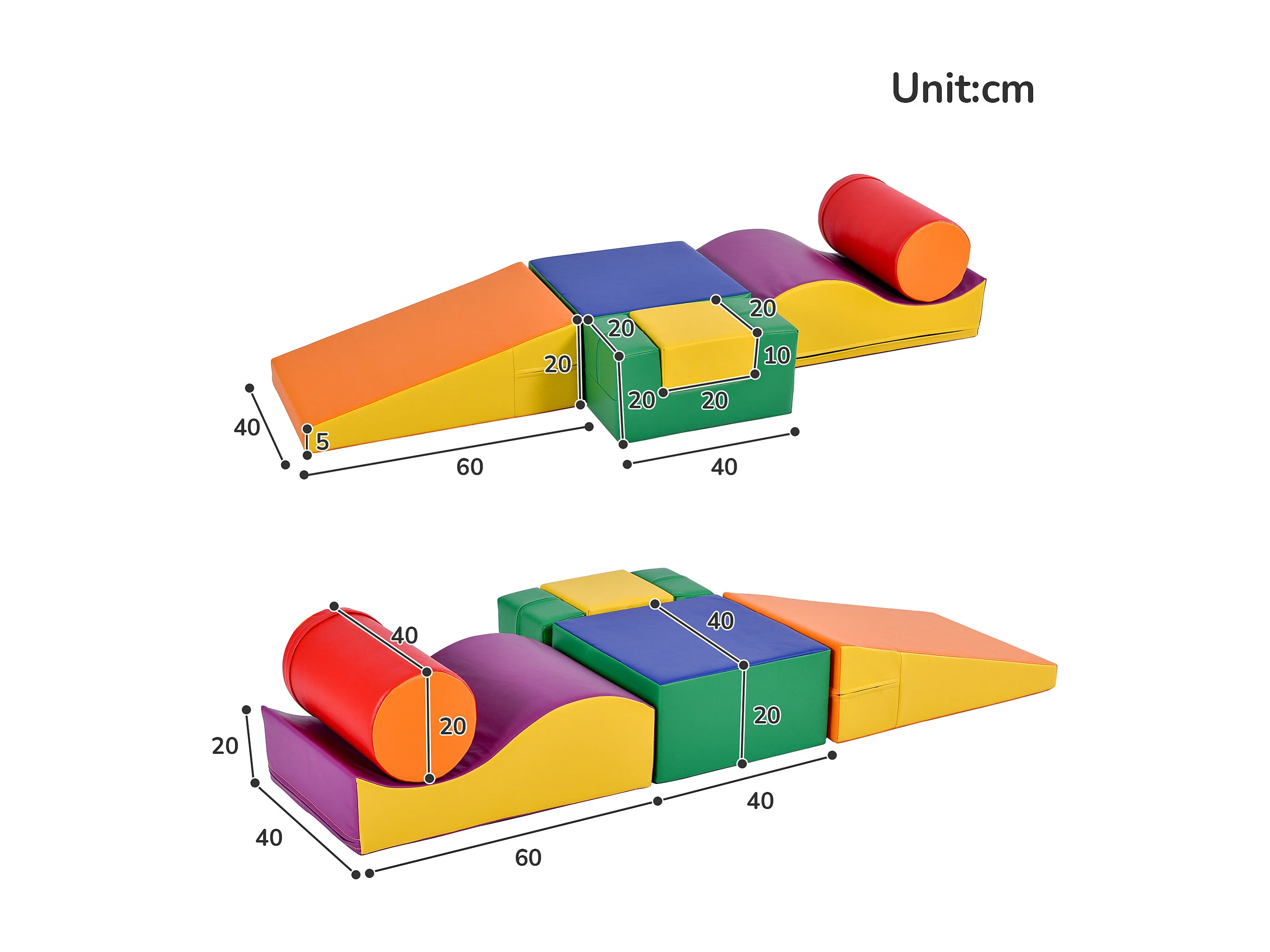 7 blocs de construction en mousse XXL - modules de motricité - jouets éducatifs - certifiés normes EN71-1-2-3 - mousse EPE revêtement PU multicolore