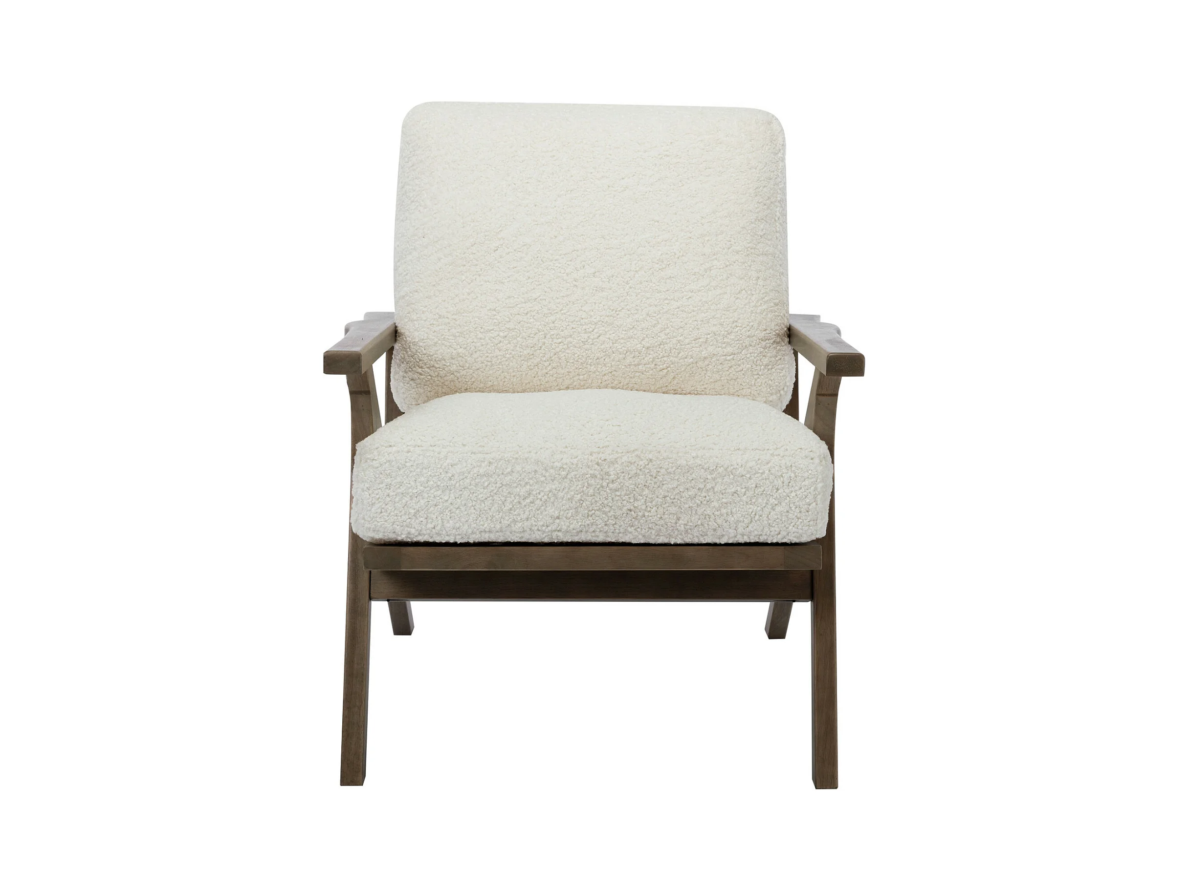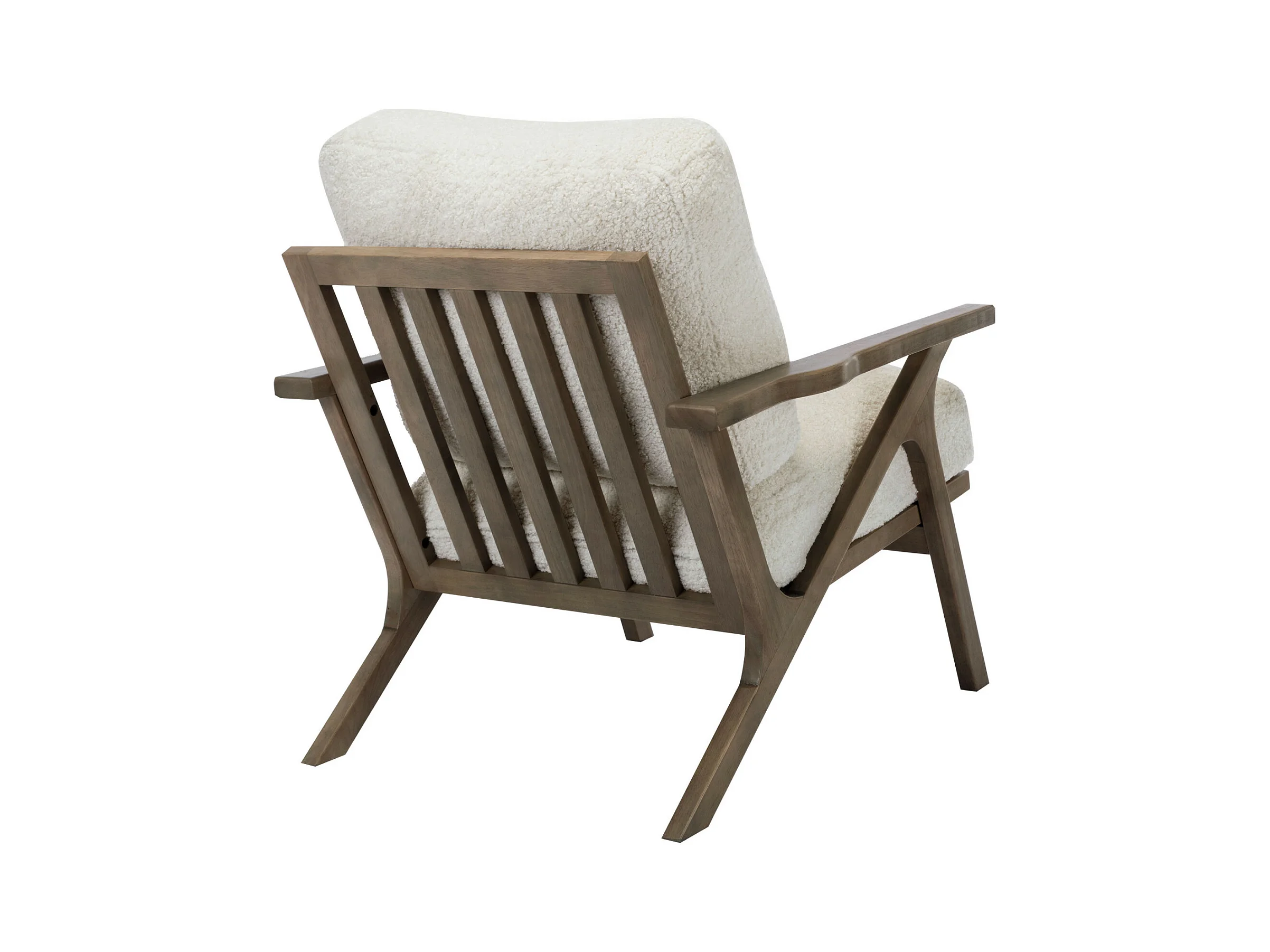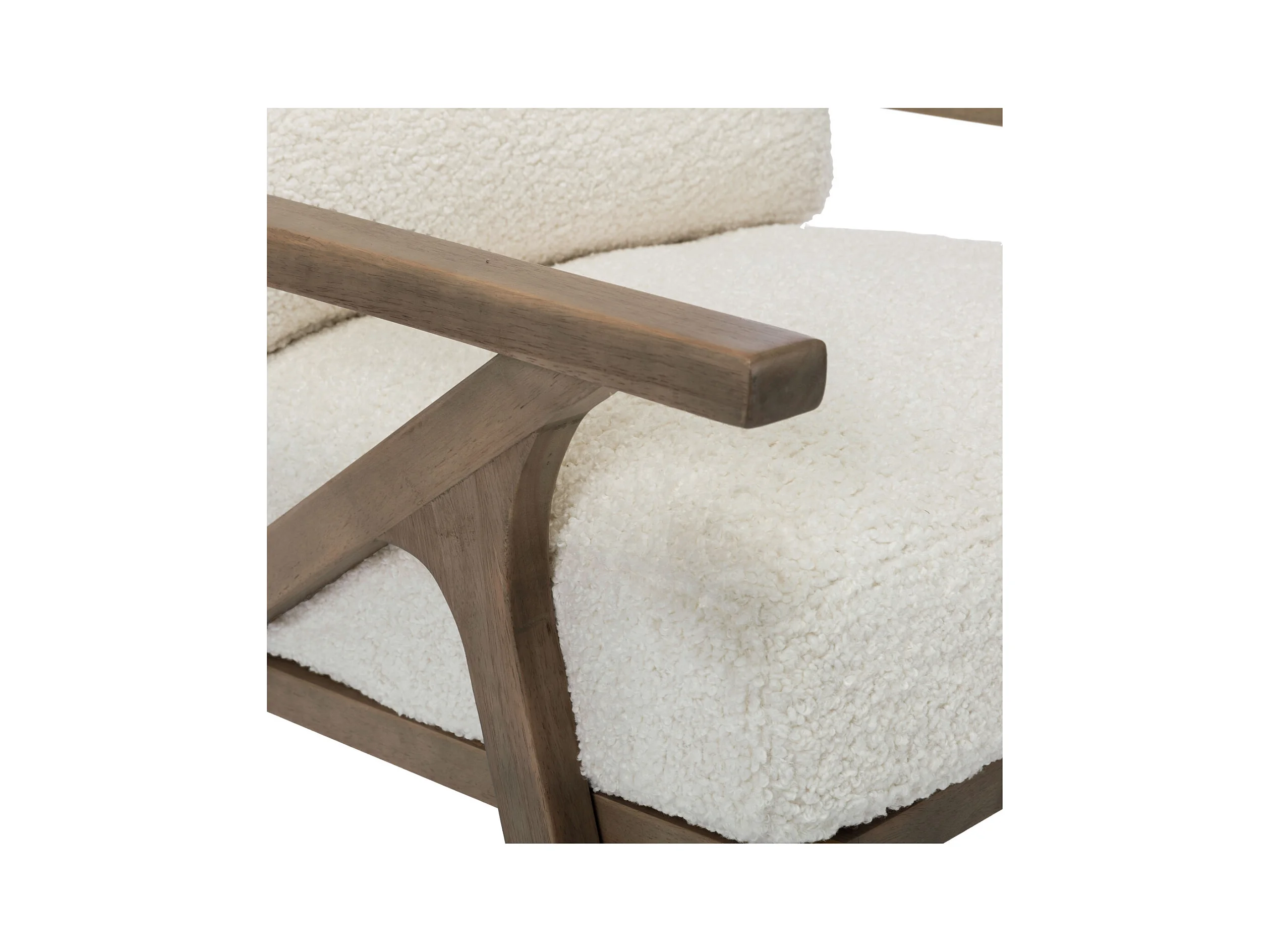 ALAN - Fauteuil lounge en tissu bouclette écru et bois patiné