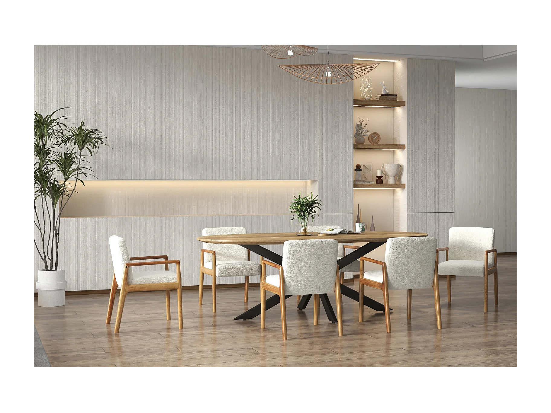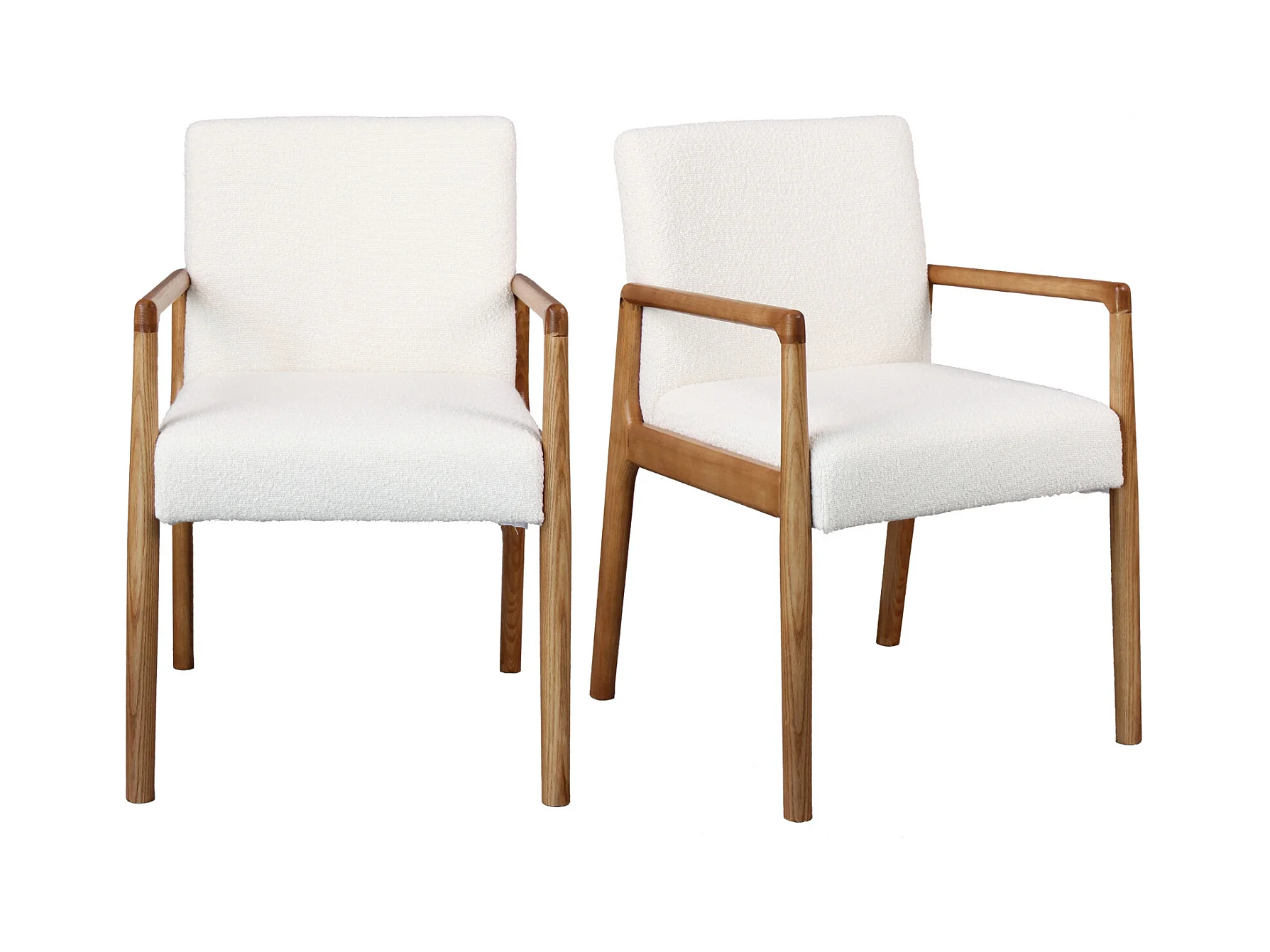 ALBAN-Fauteuil de table en Frêne naturel et tissu Curly Ecru (x2)