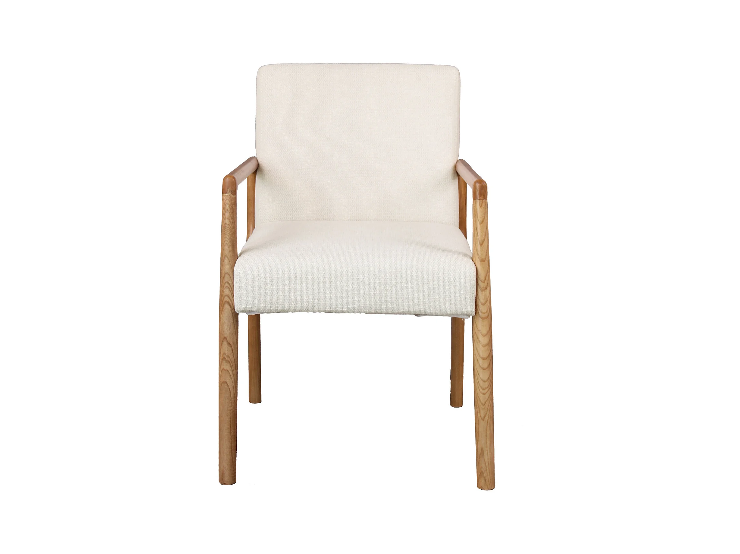 ALBAN-Fauteuil de table en Frêne naturel et tissu Trendy Ecru (x2)