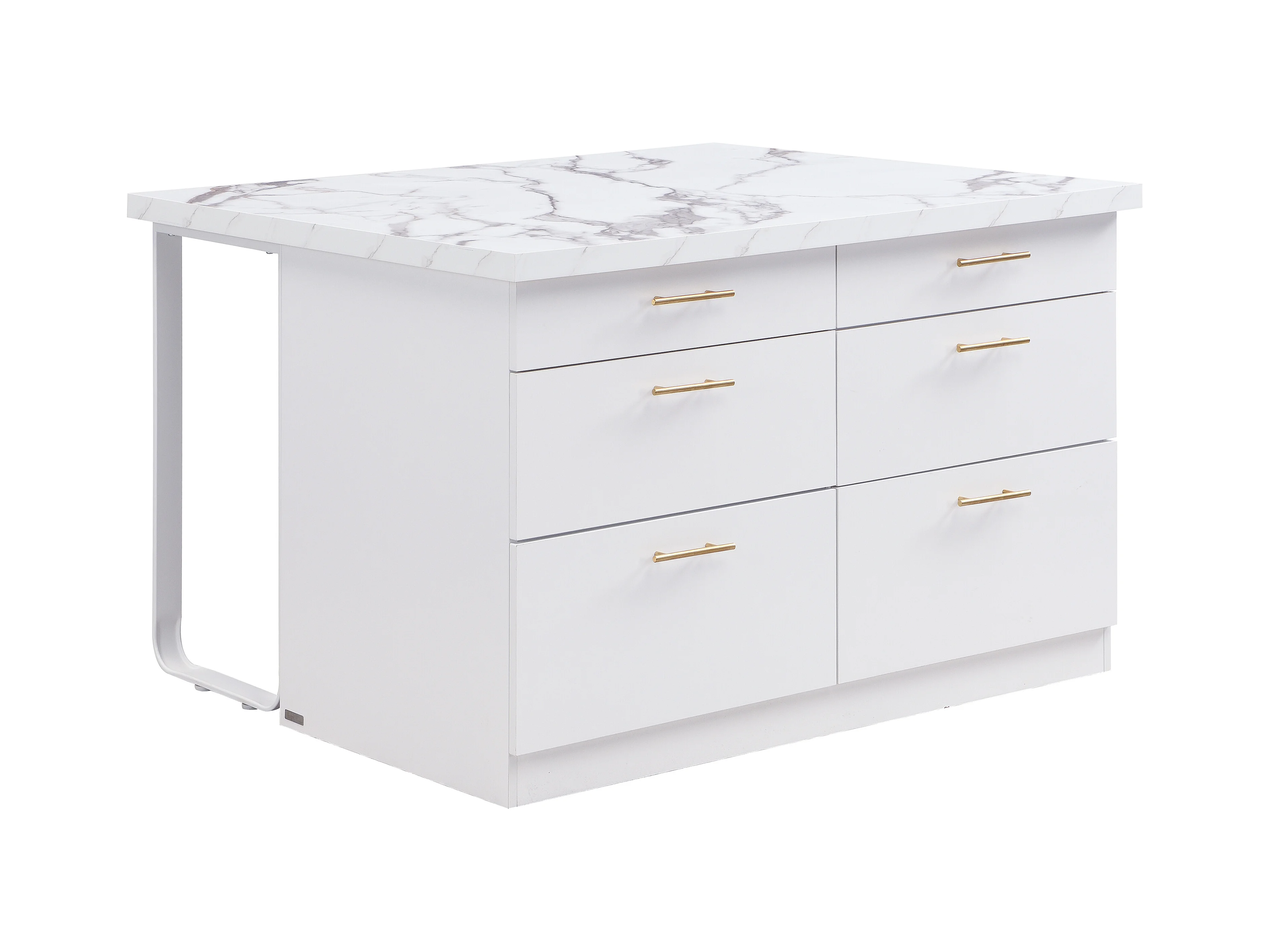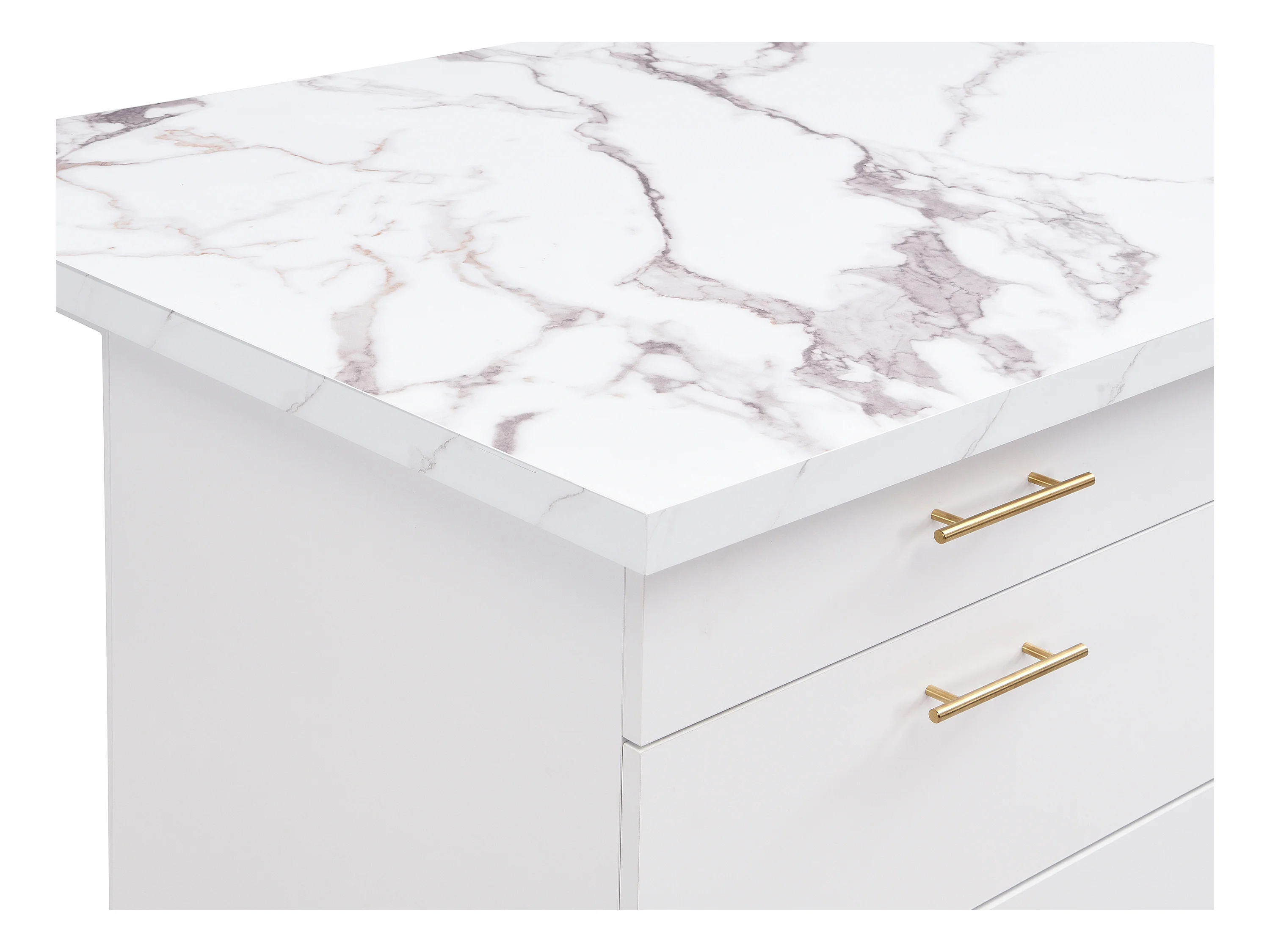 Ilot central de cuisine avec 6 tiroirs en MDF et métal - Effet marbre blanc - ALEGRITA