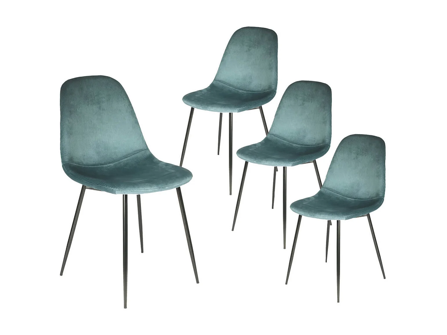ALESSIA - Lot de 4 Chaises Velours Côtelé Bleu Canard