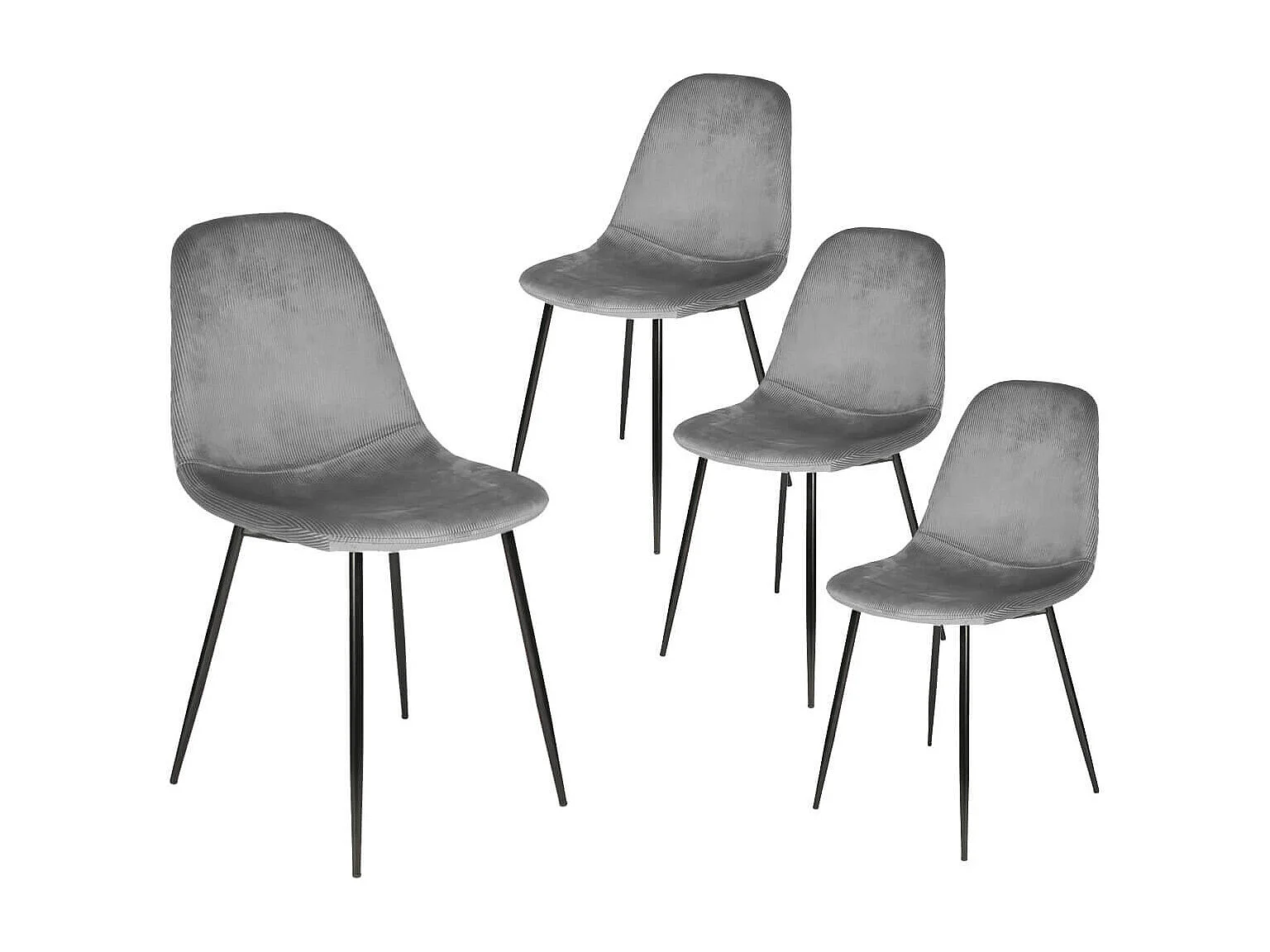 ALESSIA - Lot de 4 Chaises Velours Côtelé Gris Foncé