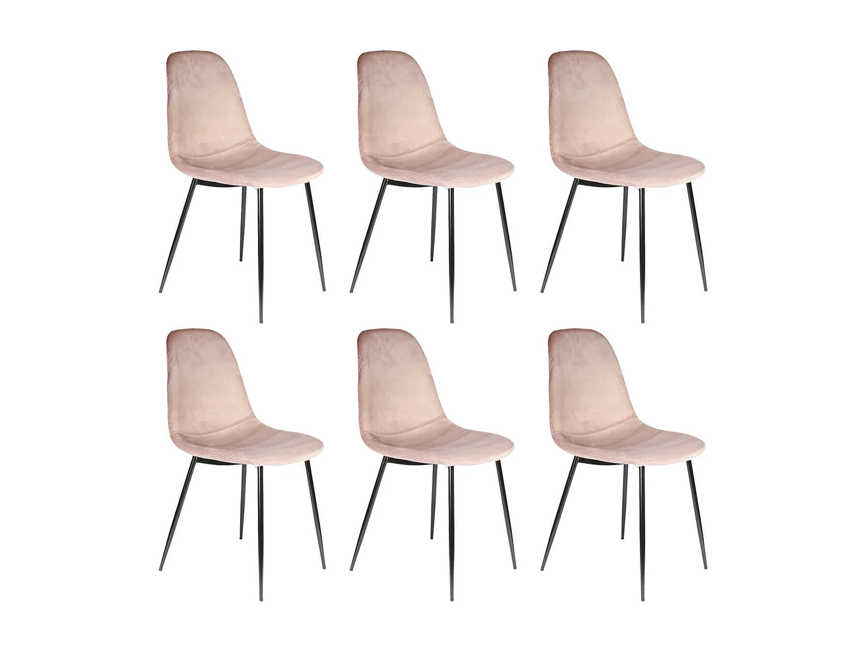 ALESSIA - Lot de 6 Chaises Velours Côtelé Roses