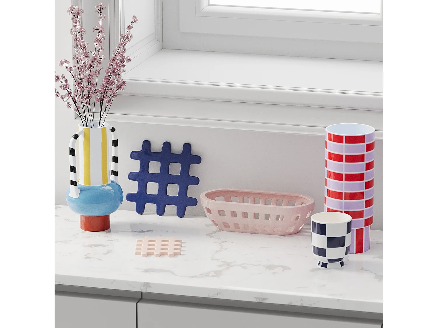 ALICANTE - Lot de 4 dessous de verre, carré céramique tressée bleu