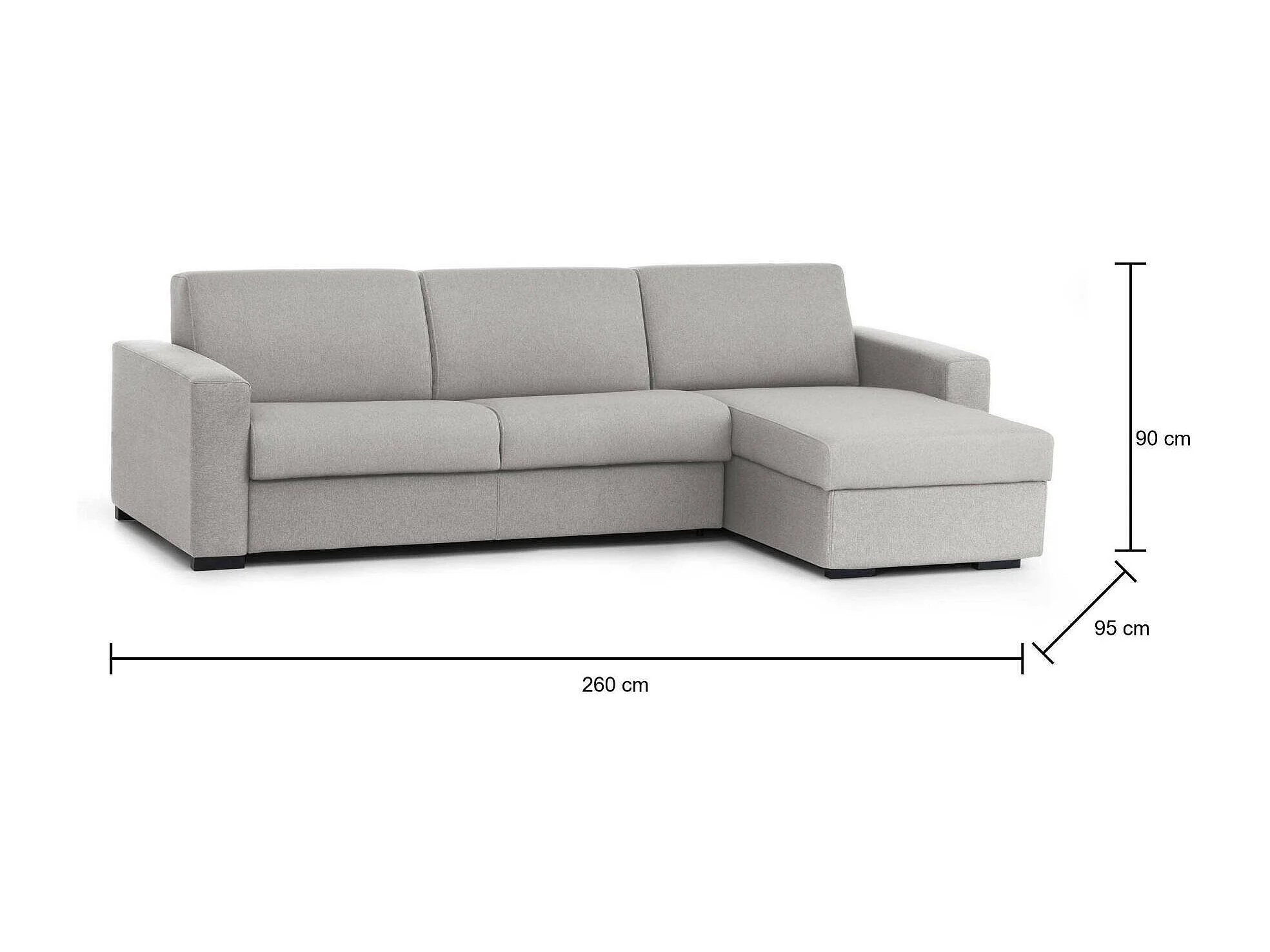 Divano letto con penisola Alisea, Sof apertura girevole, Penisola contenitore reversibile, Braccioli slim, 100% Made in Italy, Cm 260x95h90, Grigio