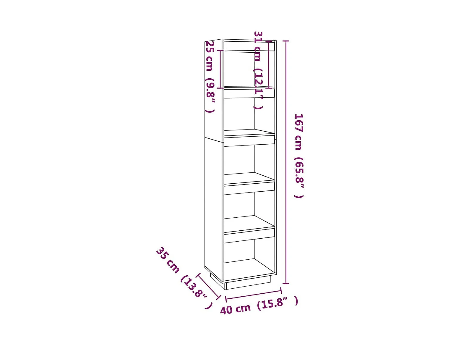 Alisha Bibliothèque/Cloison Marron miel 40x35x167 cm Pin solide