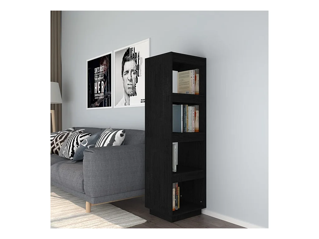 Alisha Bibliothèque/Séparateur de pièce noir 40x35x103 cm pin massif