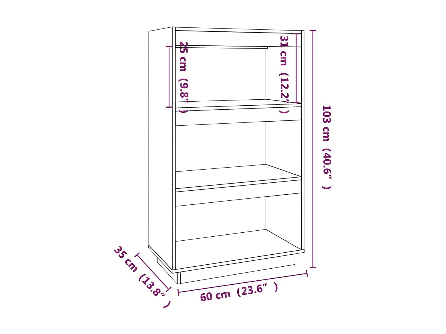 Troyle Bibliothèque/Séparateur de pièce Noir 60x35x57 cm Pin massif