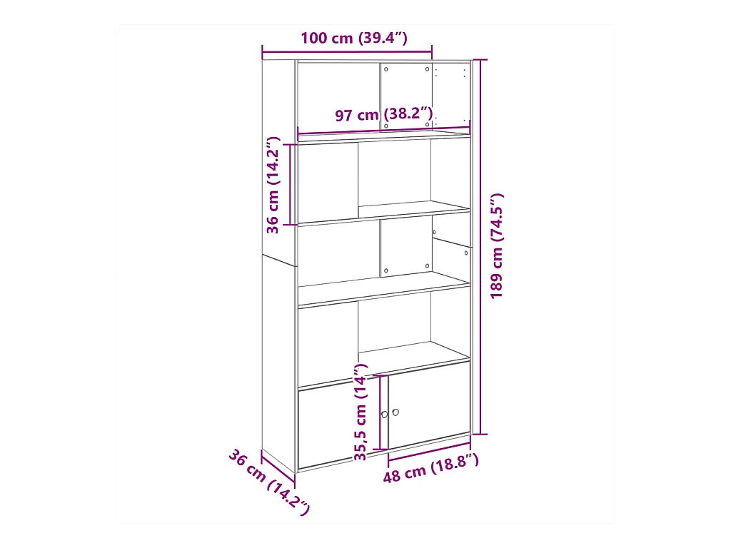 Allentown Bibliothèque chêne sonoma 100x36x189 cm bois d'ingénierie