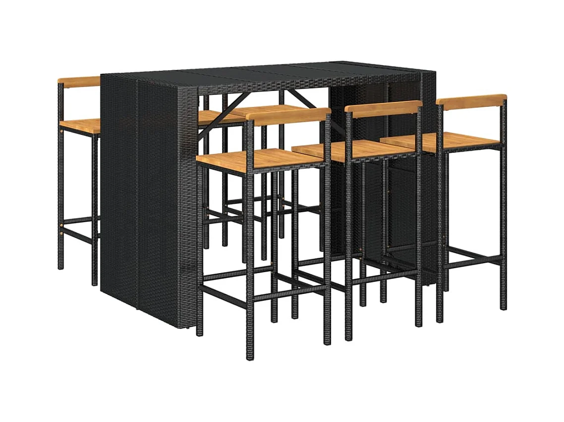 Allouez Ensemble de bar jardin 7 pcs noir poly rotin/bois massif acacia