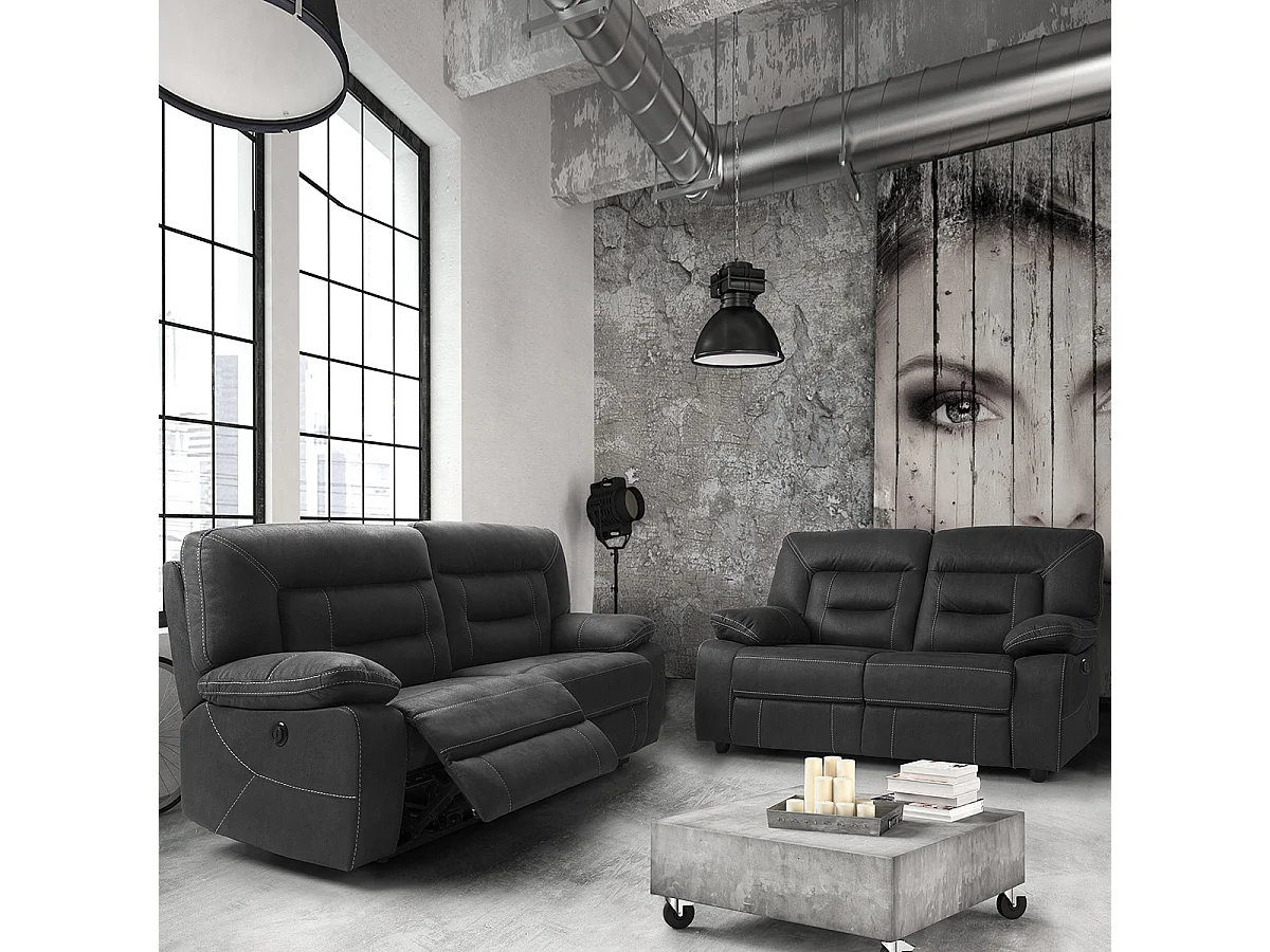 ALMERIA - Canapé Relax Electrique 2 Places Gris Foncé