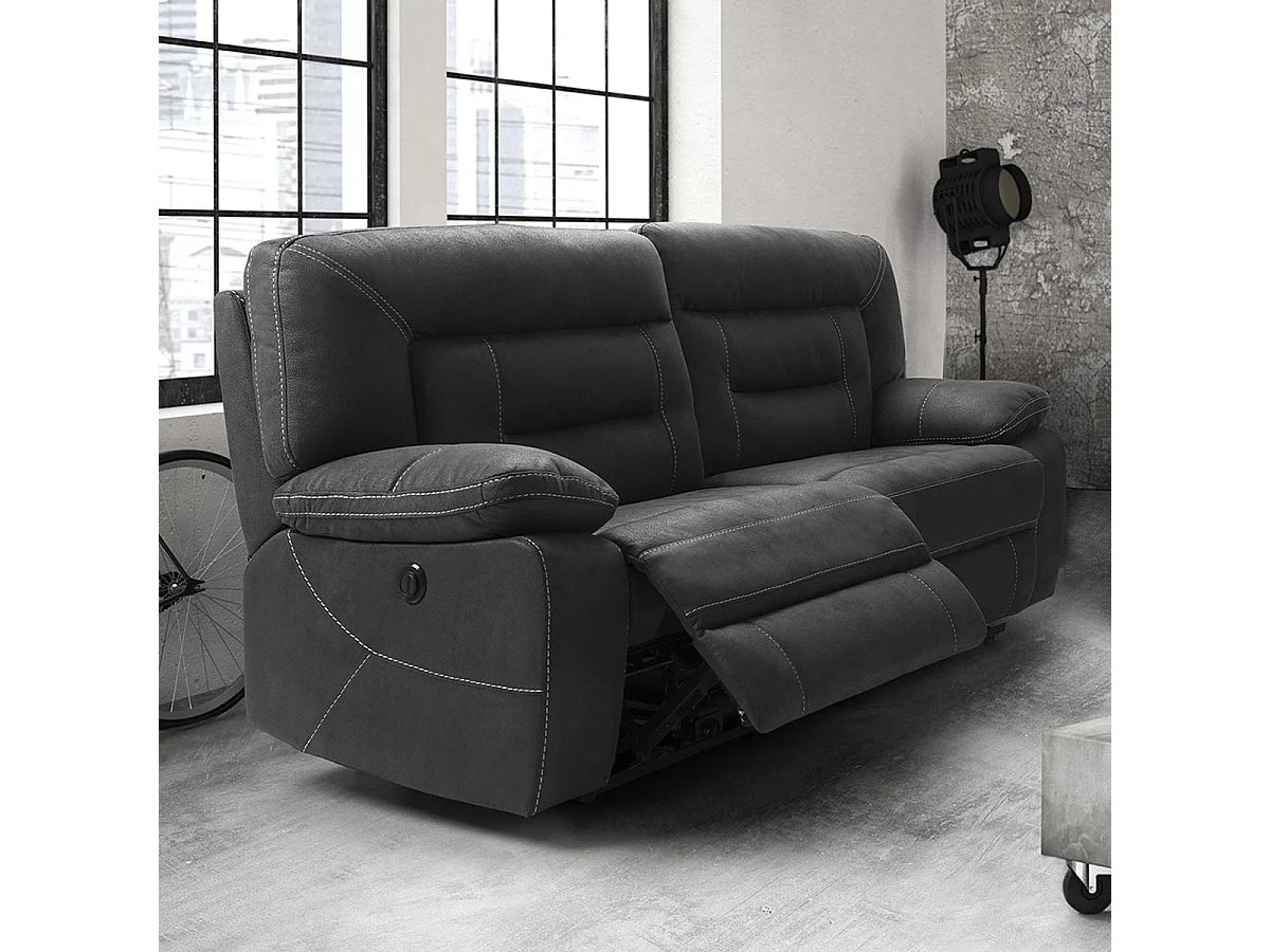 ALMERIA - Canapé Relax Electrique 3 Places Gris Foncé