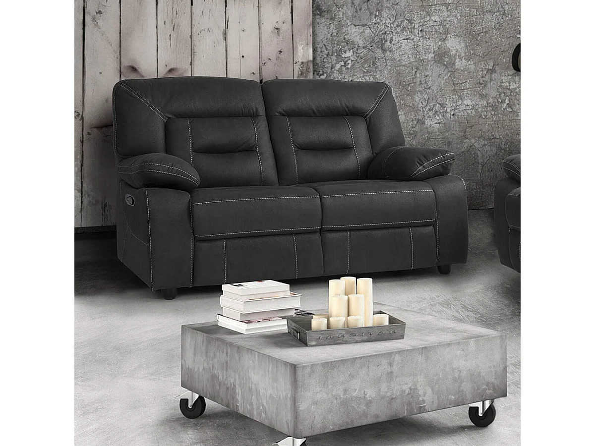 ALMERIA - Canapé Relax Manuel 2 Places Gris Foncé