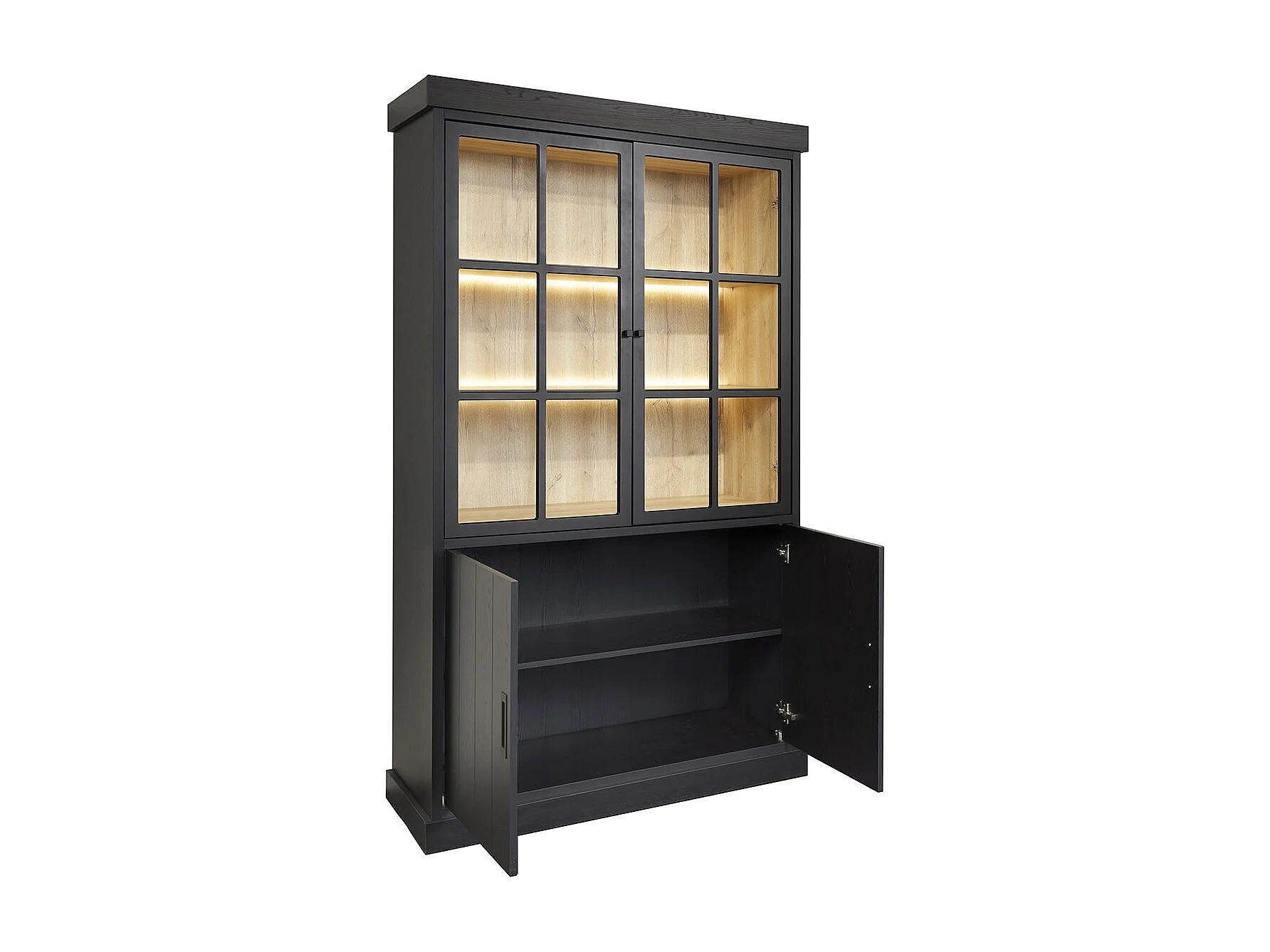 ALPHA - Vitrine 4 Portes Aspect Bois Noir avec Leds
