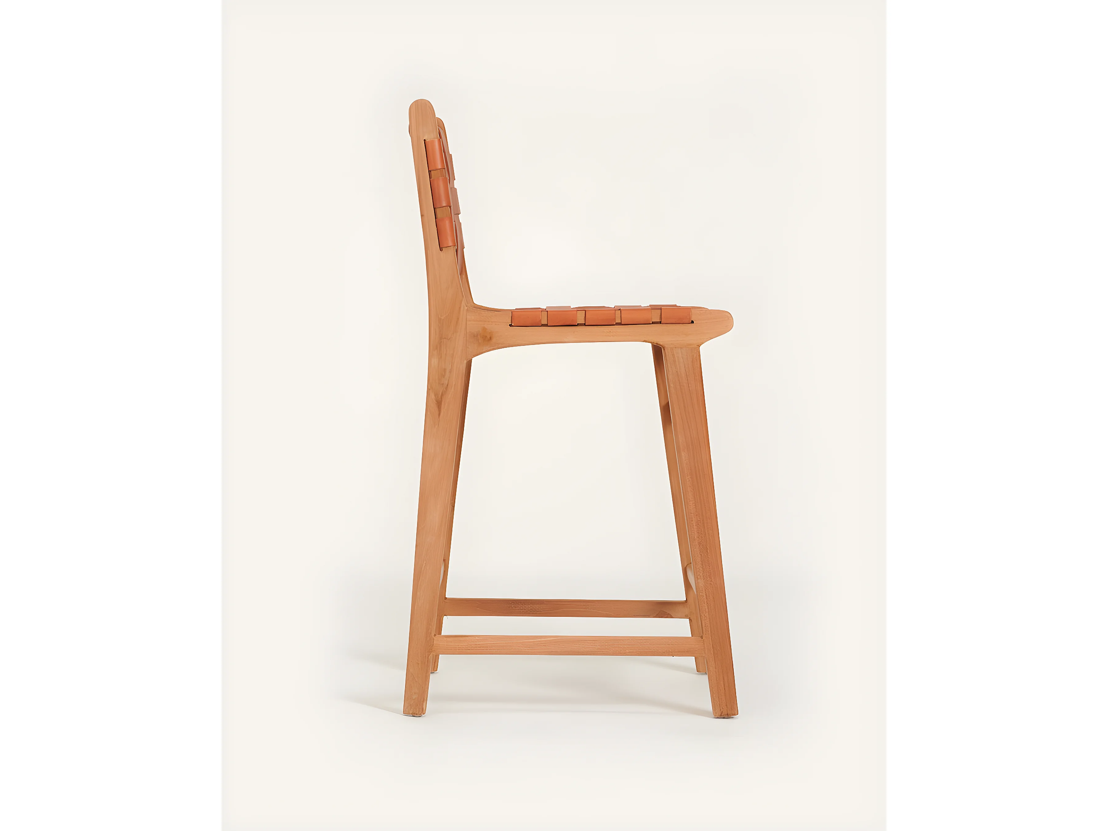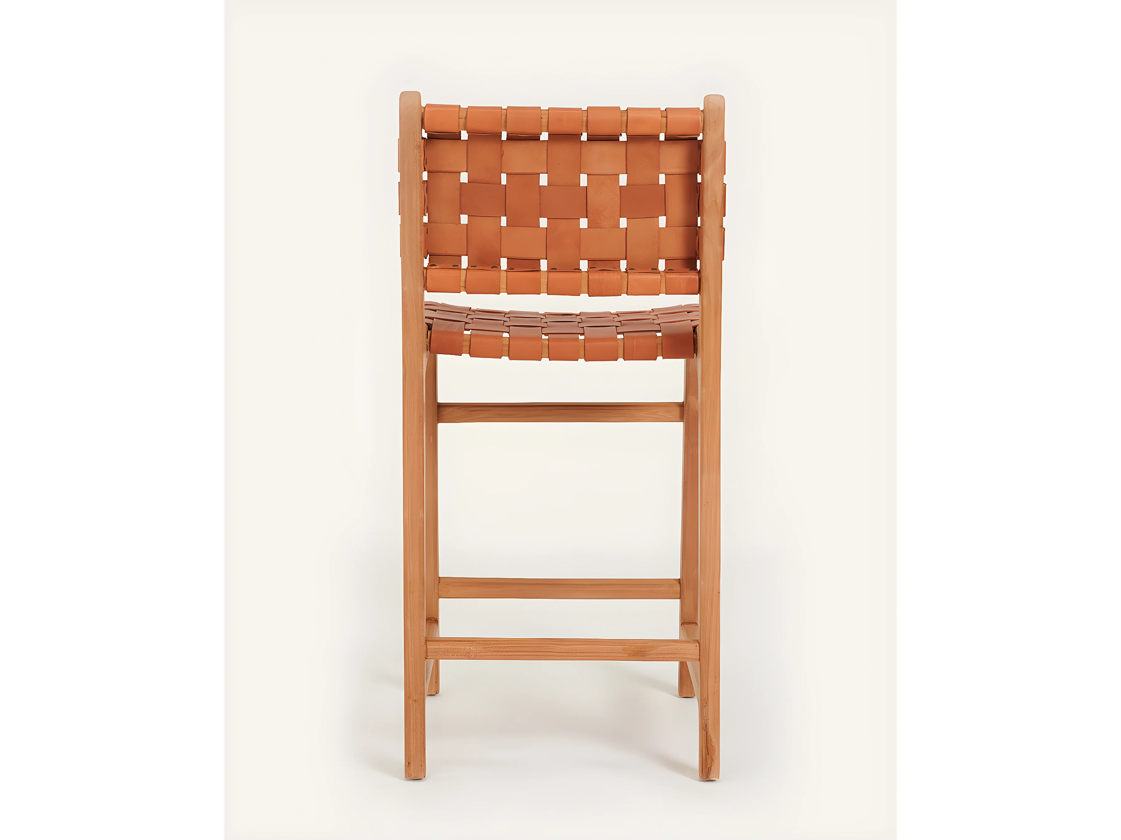 Ambra - Lot de 2 Chaise de bar en teck massif et cuir vachette tressé marron