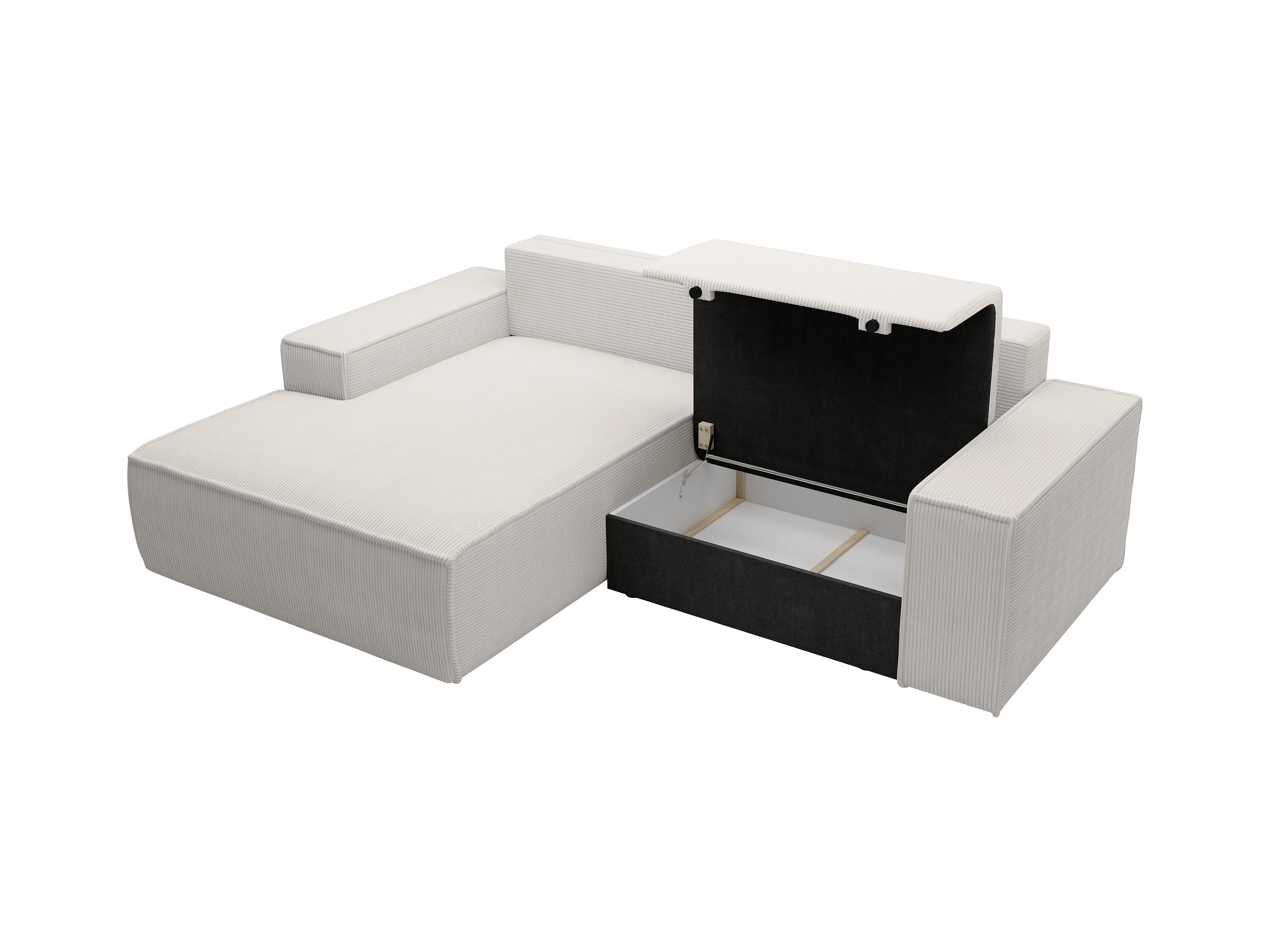Petit canapé d'angle gauche convertible en velours côtelé beige AMELIA