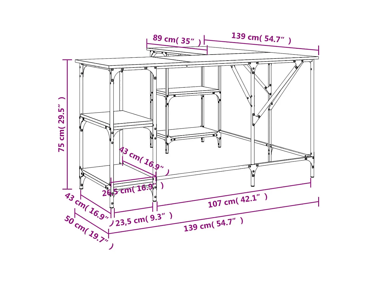 Selma Bureau chêne sonoma 139x139x75 cm bois d'ingénierie