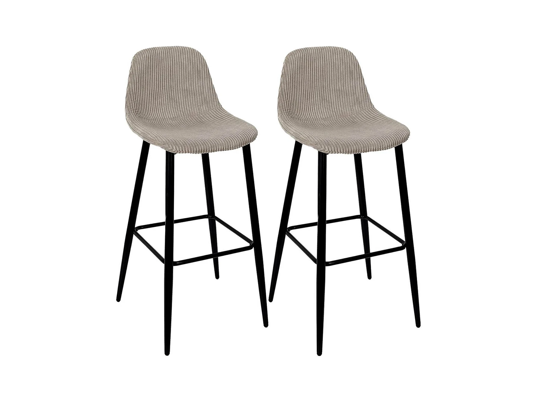 AMORY - Lot de 2 tabourets de bar en velours côtelé coloris taupe