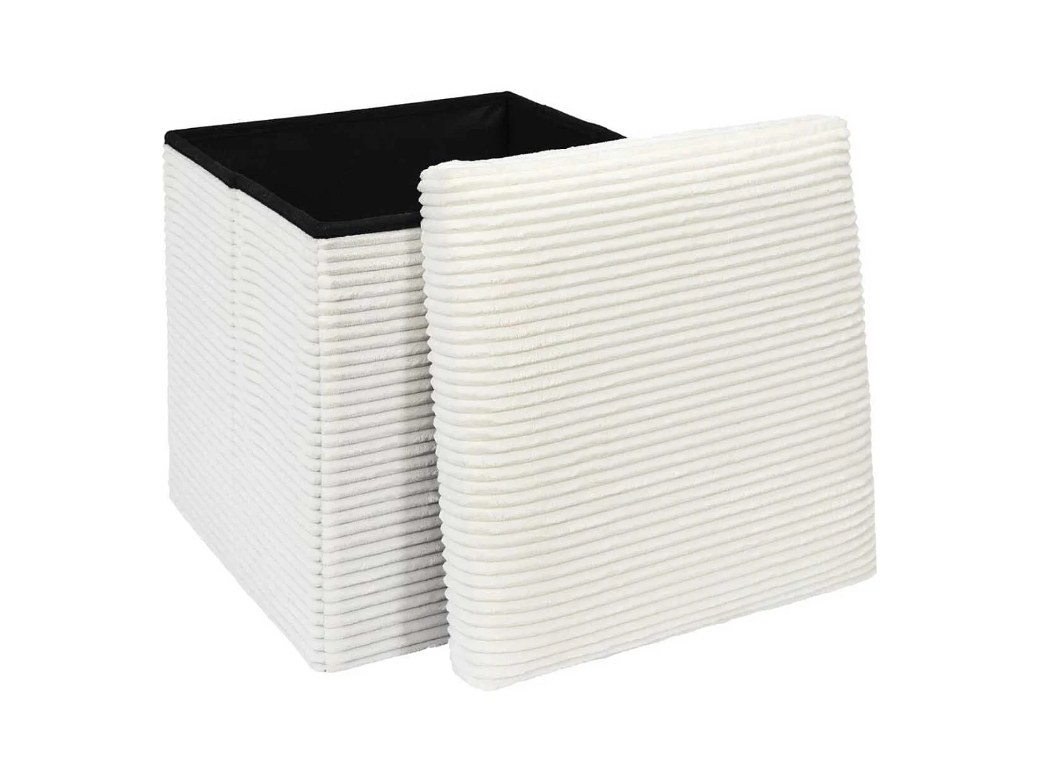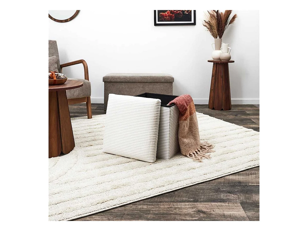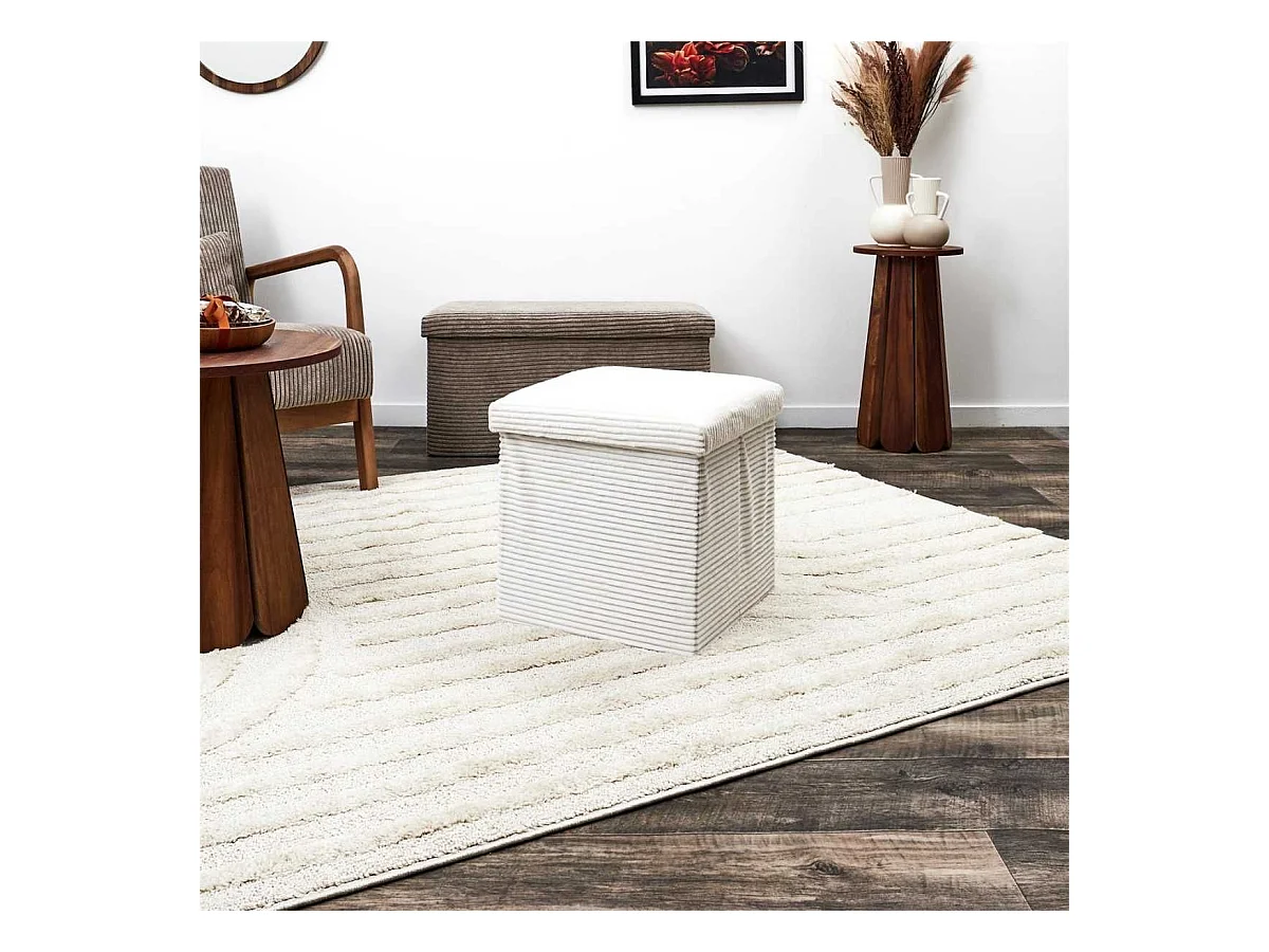 Pouf Coffre Pliable Côtelé Beige 38x38 cm - AMORY