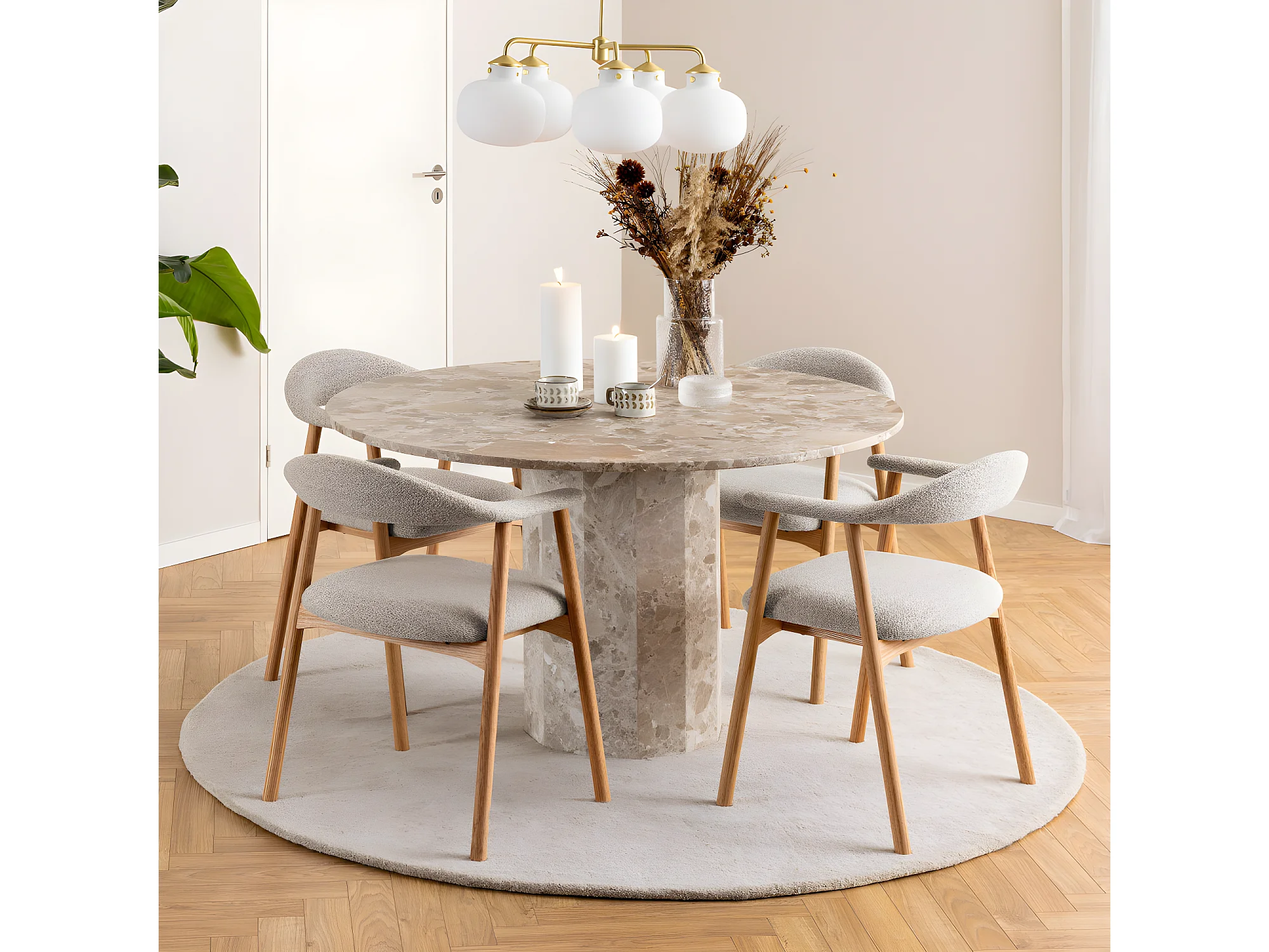 Anabate - Lot de 2 fauteuils de table en tissu et bois - Naturel chiné