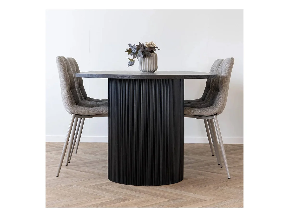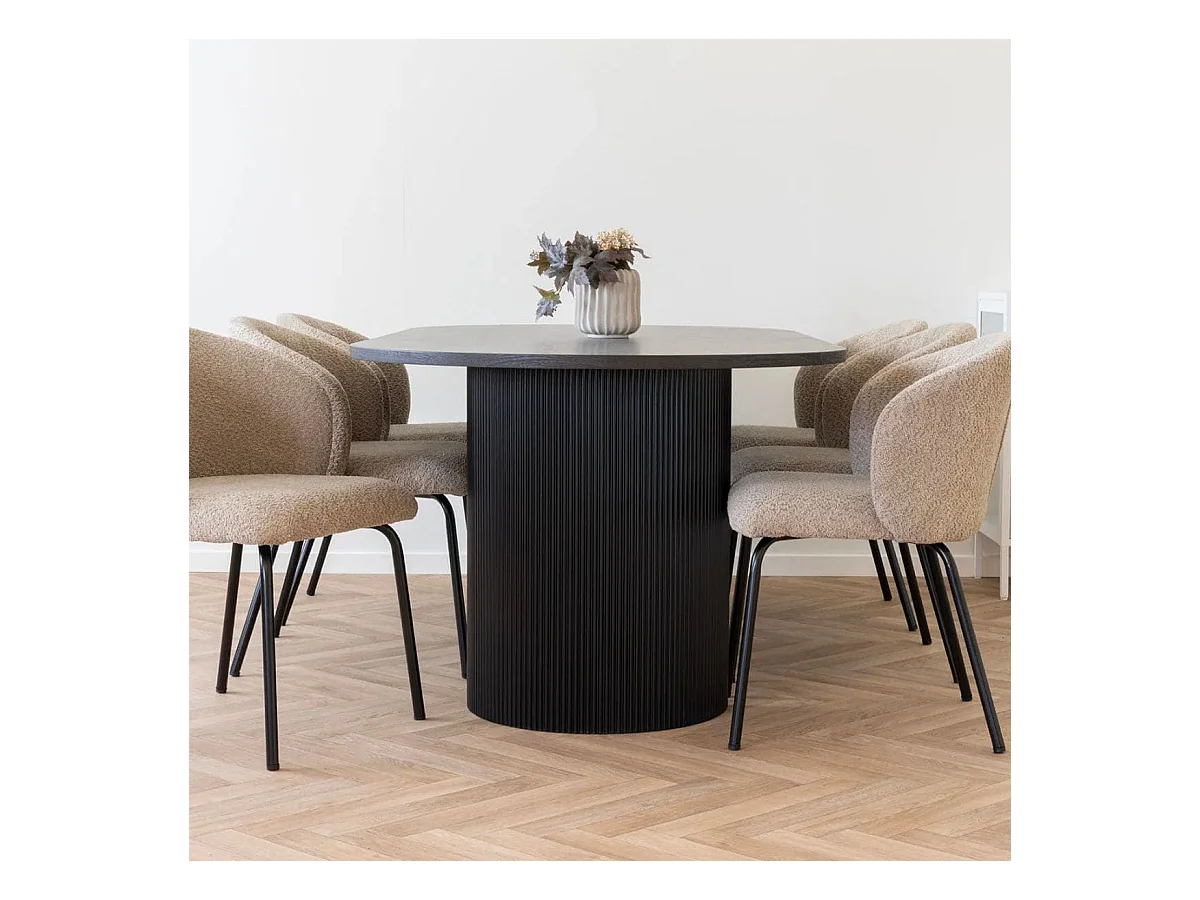 ANKARA - Table repas Ovale Pieds Relief MDF Effet bois foncé