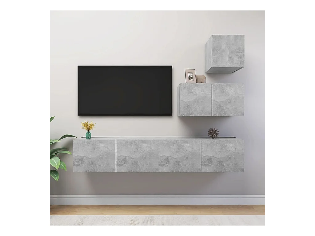 Antelope Ensemble de meubles TV 4 pcs Gris béton Bois d'ingénierie
