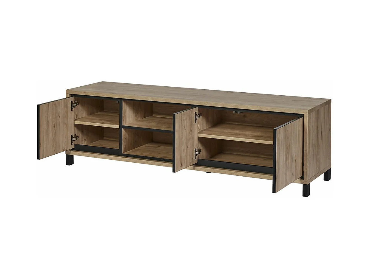 ANTHONY - Meuble TV 170cm Aspect bois Détail Déco Lignes Verticales Noires