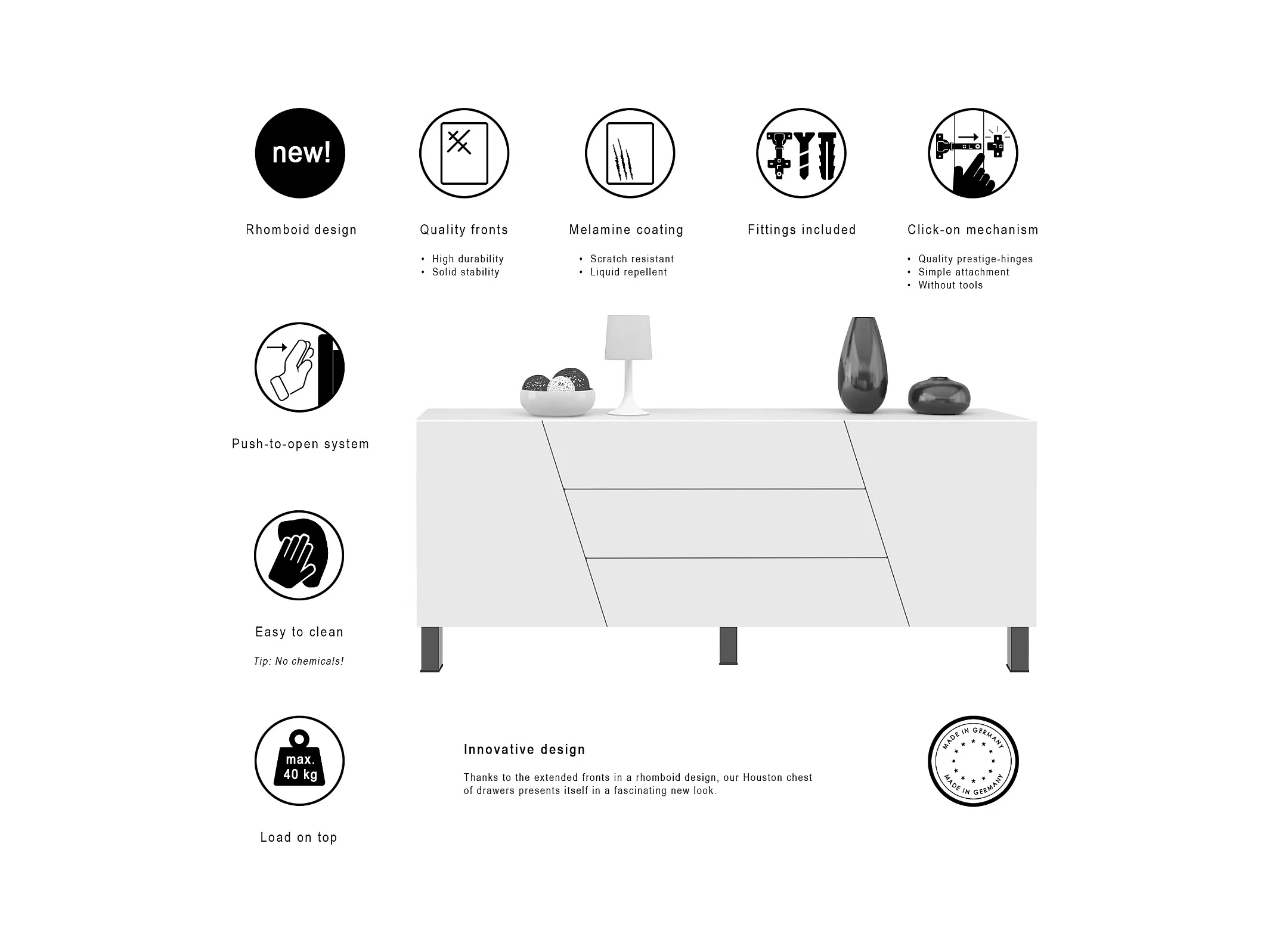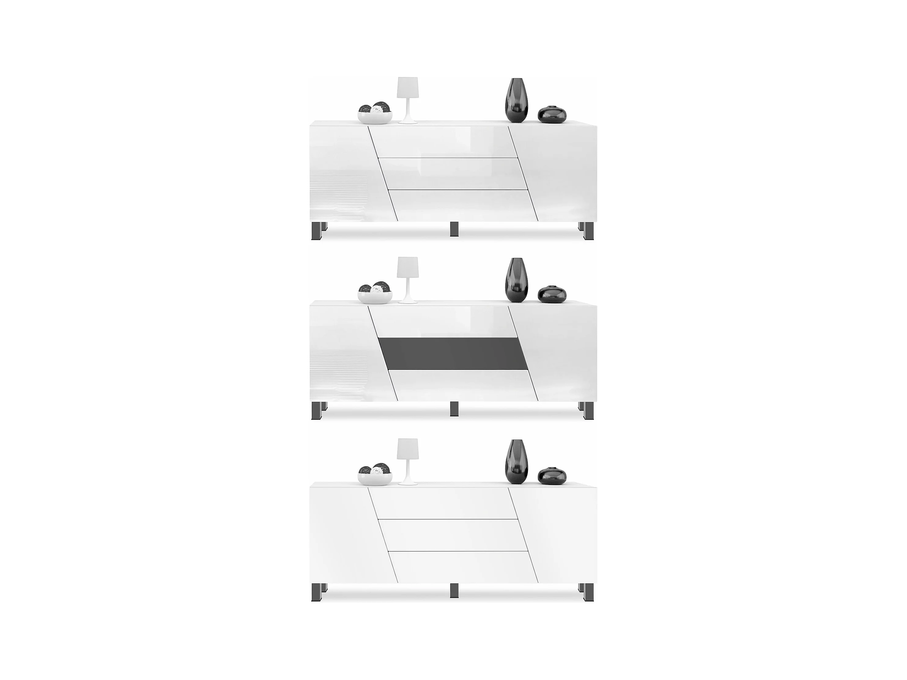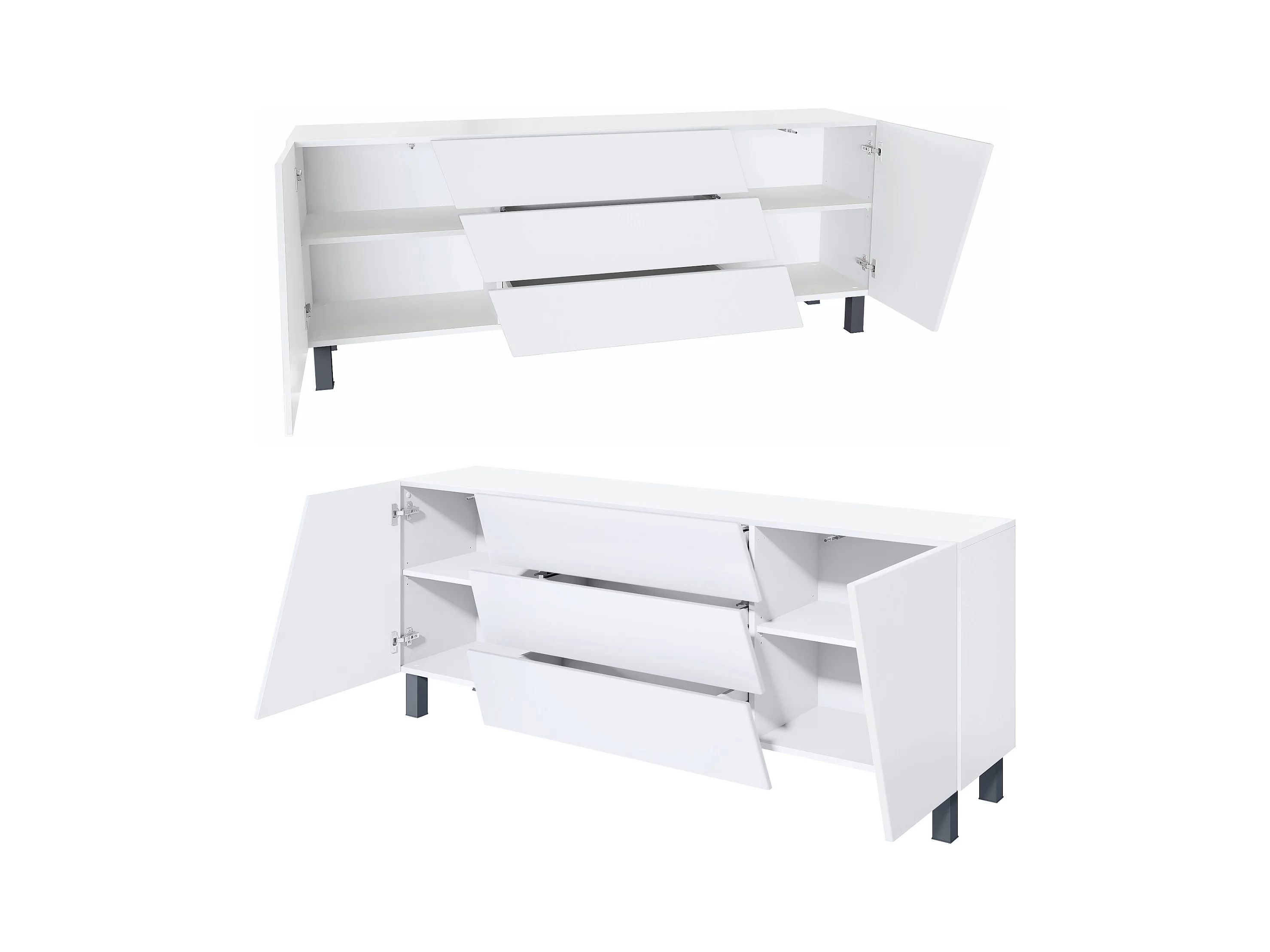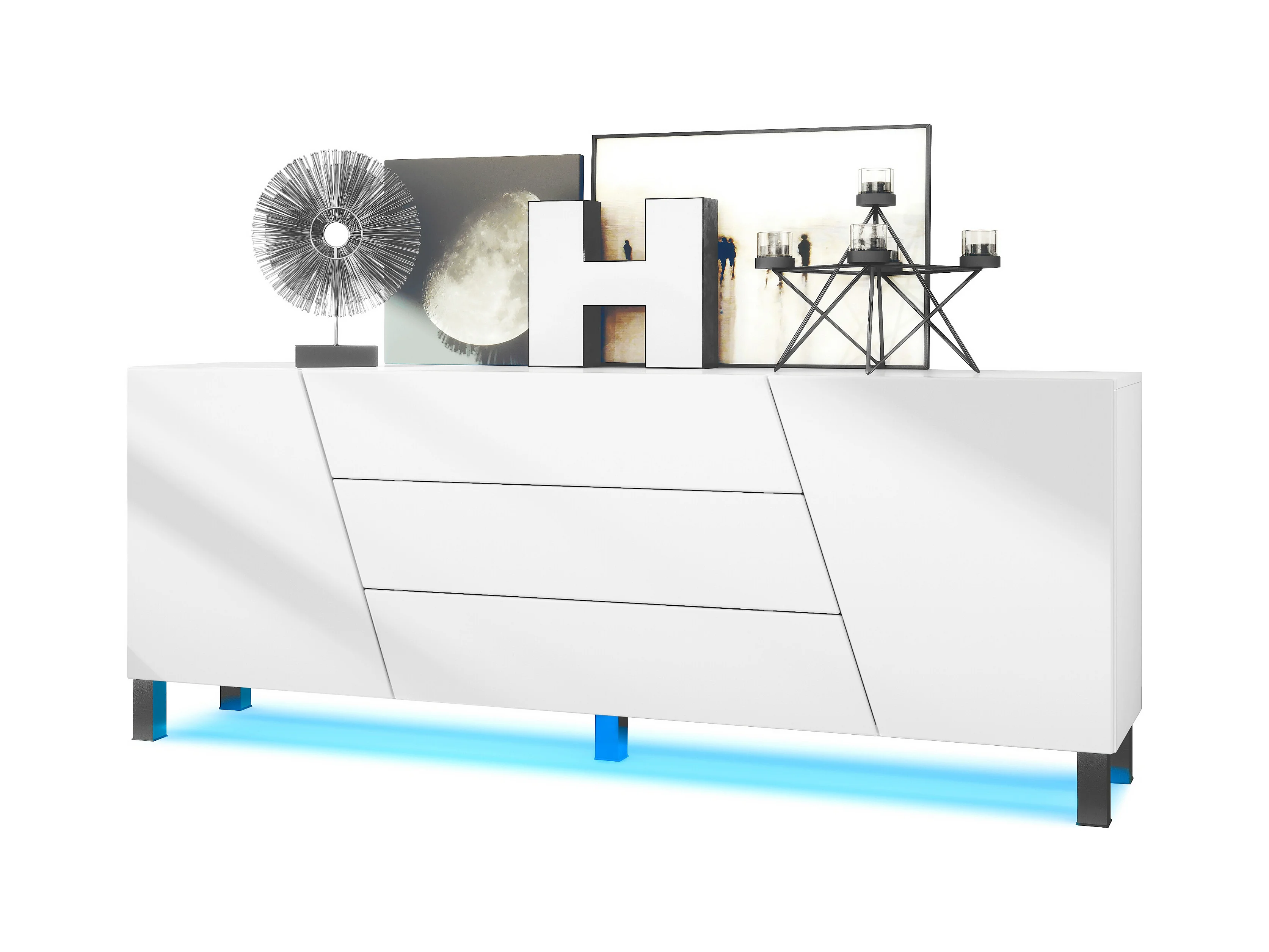 Aparador Houston, cómoda con 2 puertas y 3 cajones, carcasa blanca mate, frentes blanca mate, éclairage LED inclus (178 x 57,5 x 38,5 cm)