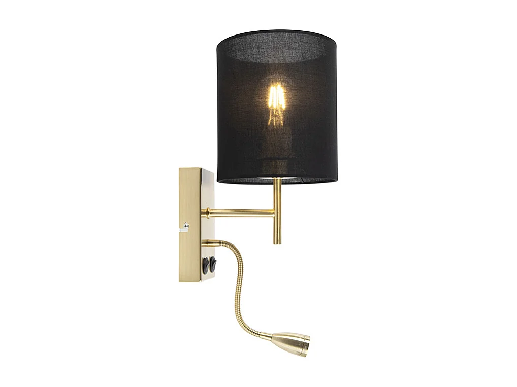 Applique Art Déco or avec abat-jour en coton noir - Stacca