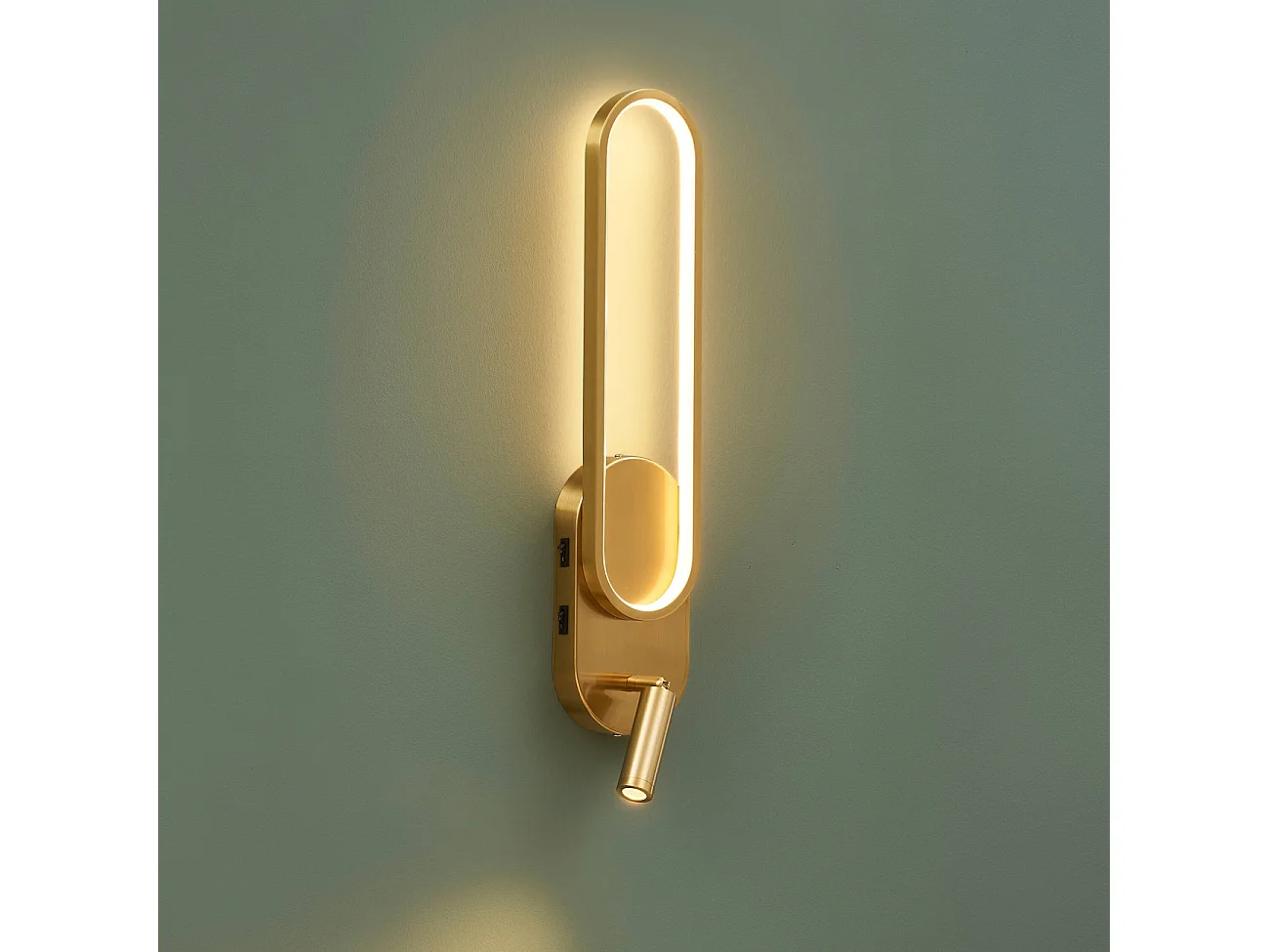 Applique liseuse LED intégrée finition laiton double interrupteur - Jena