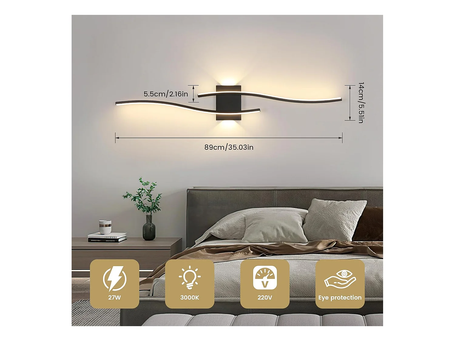 Applique Murale LED Intérieure,Noir Lignes Simples 27W 3000LM Lampe Murale LED Moderne, Éclairage Luminaire Mural LED pour Chambre,Blanc Chaud 3000K