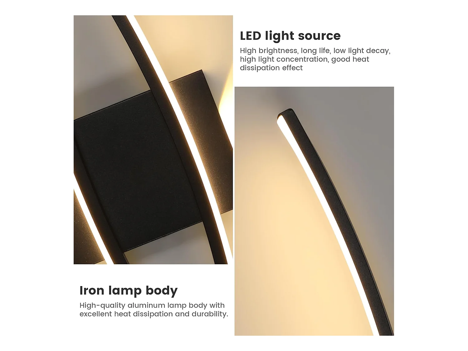 Applique Murale Intérieure,Moderne Lampe Murale Noir,15W Appliques LED Design Incurvée,Luminaire Murals en Acryliquel pour Chambre,Blanc Froid 6500K